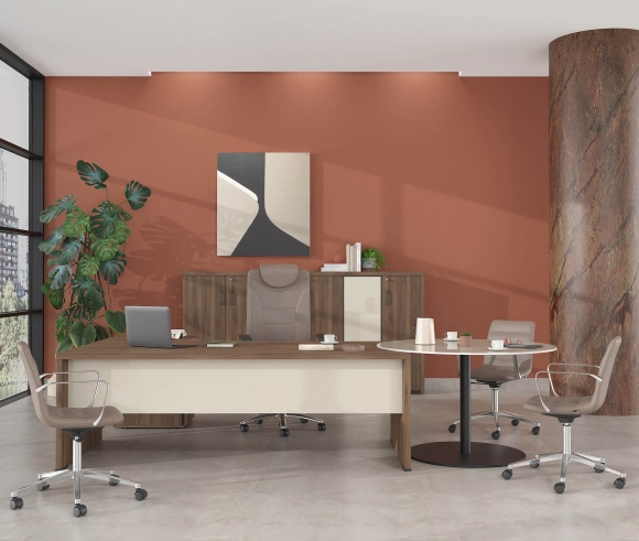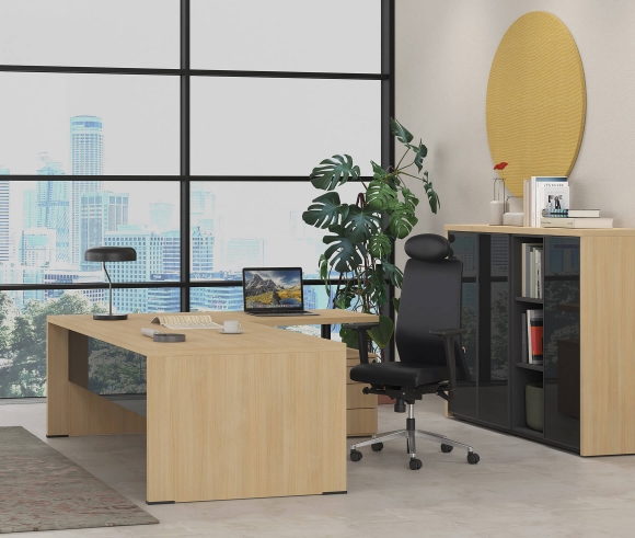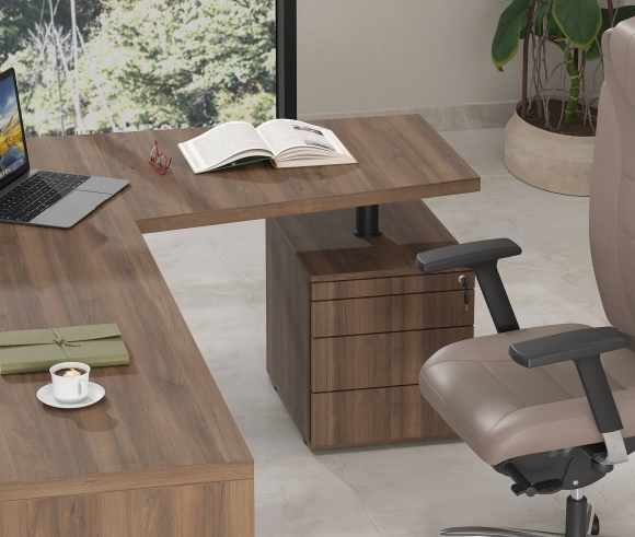 ΕΡΓΟΝΟΜΙΑ – Η προσθήκη προέκτασης και η ενσωματωμένη συρταριέρα, κάνει την ζωή κάθε διευθυντικού στελέχους πιο εύκολη, ώστε να μπορεί να αποδώσει τα μέγιστα σε μία θέση με ιδιαίτερες απαιτήσεις. Παράλληλα, οι ροζέτες και το προαιρετικό κανάλι, εξασφαλίζουν την ασφαλή διέλευση καλωδίων και τοποθέτηση πολύπριζων κάτω από την επιφάνεια