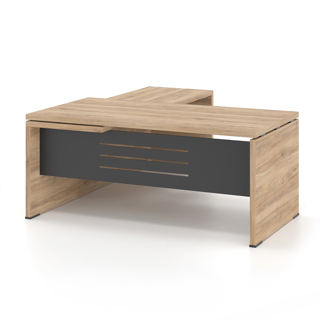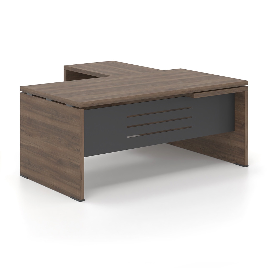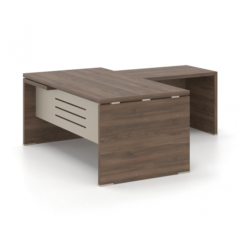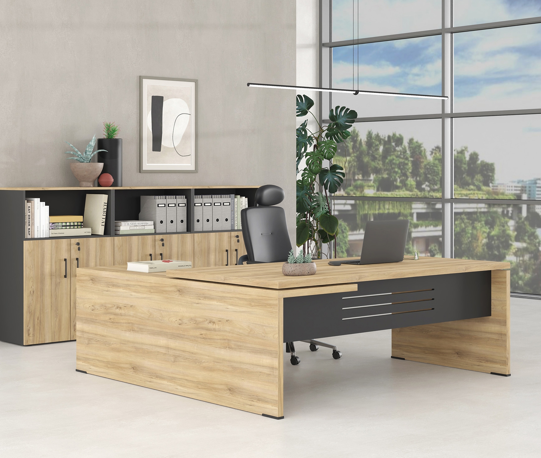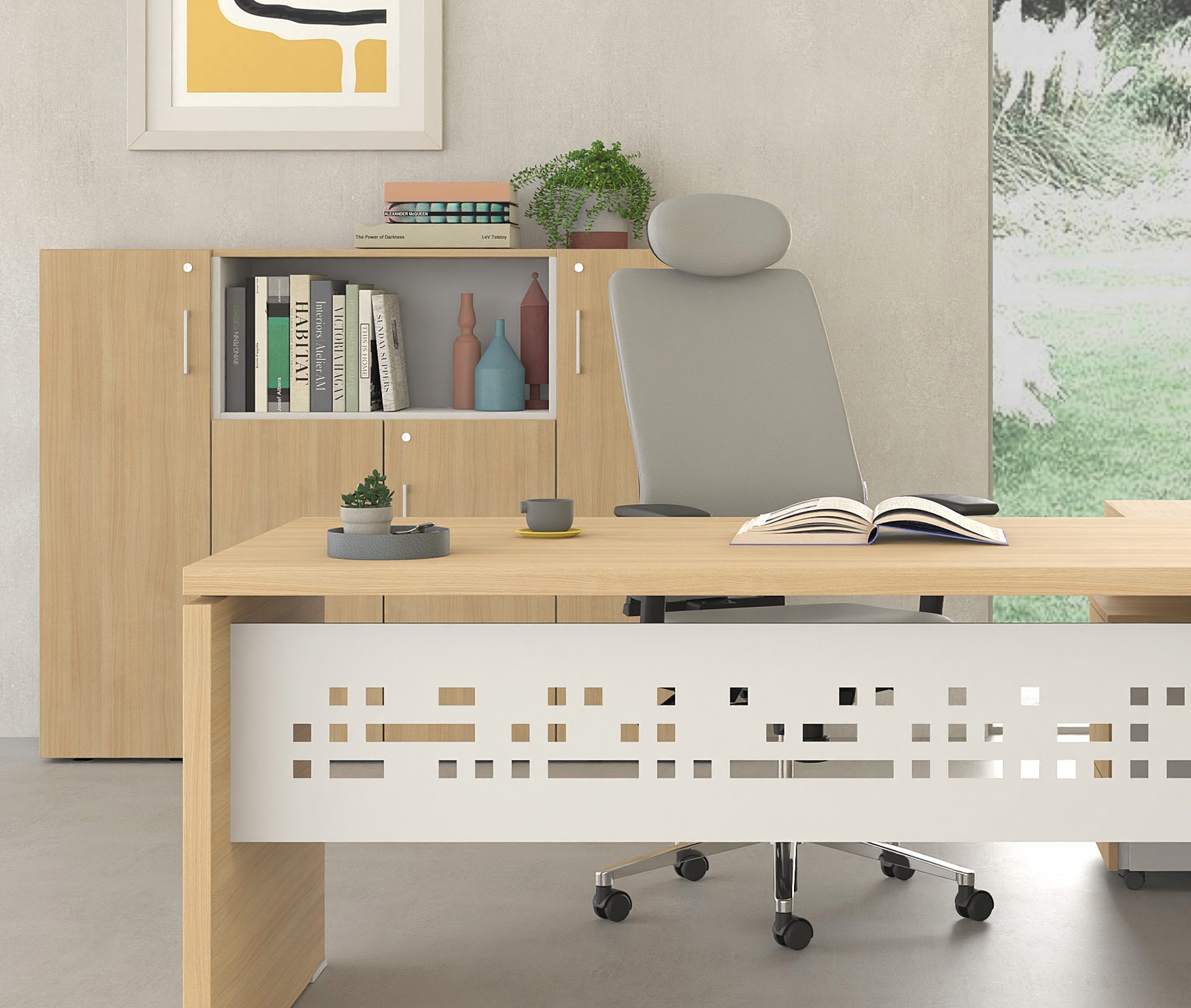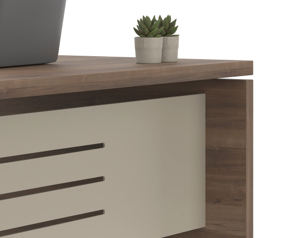 ΥΨΗΛΗ ΑΙΣΘΗΤΙΚΗ – Οι διαφορετικοί συνδυασμοί υλικών δημιουργούν ένα γραφείο υψηλής αισθητικής. Η δυνατότητα επιλογής μετόπης από μοριοσανίδα μελαμίνης, γυαλί ή μέταλλο σε συνδυασμό με την προαιρετική γυάλινη επιφάνεια της προέκτασης, δίνουν μια μοντέρνα πινελιά και κάνουν το διευθυντικό γραφείο LYSIS PLUS ακαταμάχητο