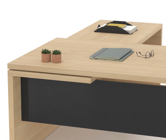 >> Δυνατότητα προσθήκης προέκτασης με γυάλινη ή μελαμινική επιφάνεια, καθιστώντας έτσι την εργονομία κυρίαρχο πλεονέκτημα