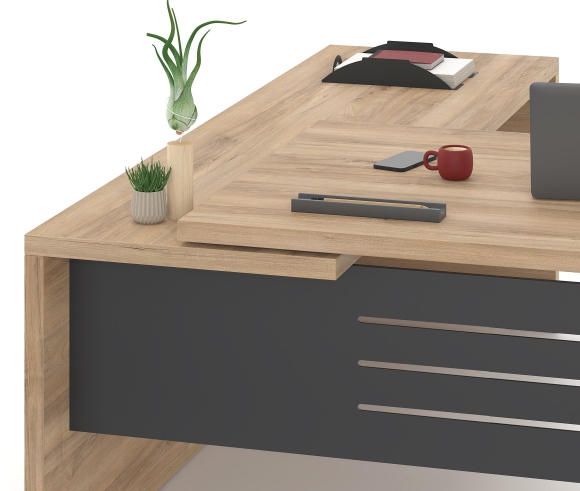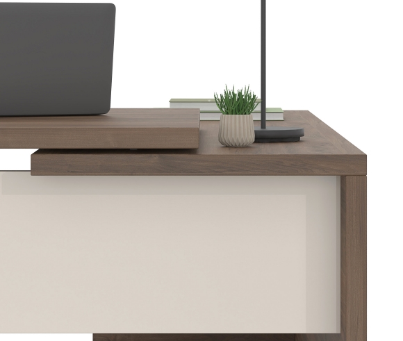 >> Δυνατότητα προσθήκης προέκτασης με γυάλινη ή μελαμινική επιφάνεια, καθιστώντας έτσι την εργονομία κυρίαρχο πλεονέκτημα