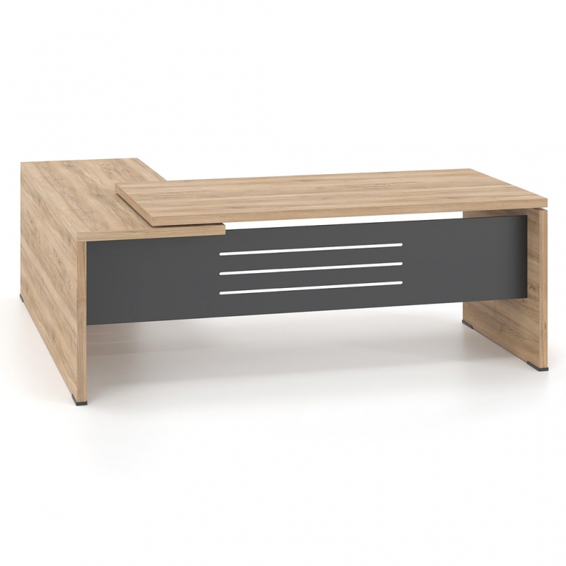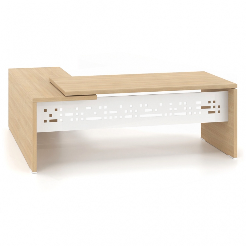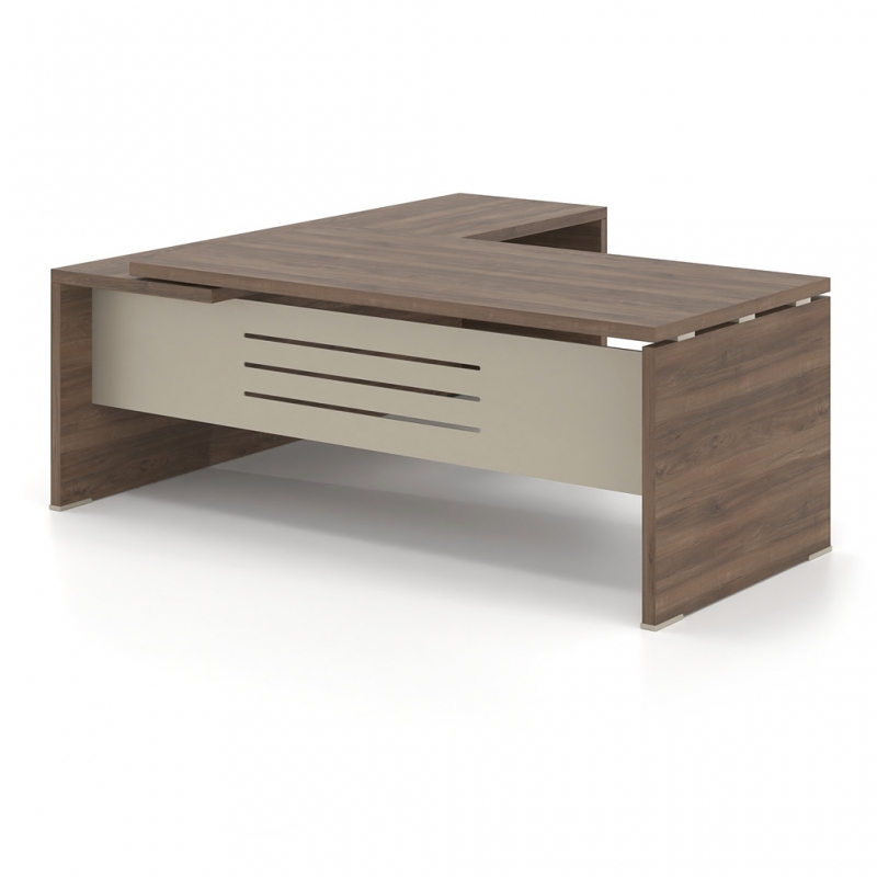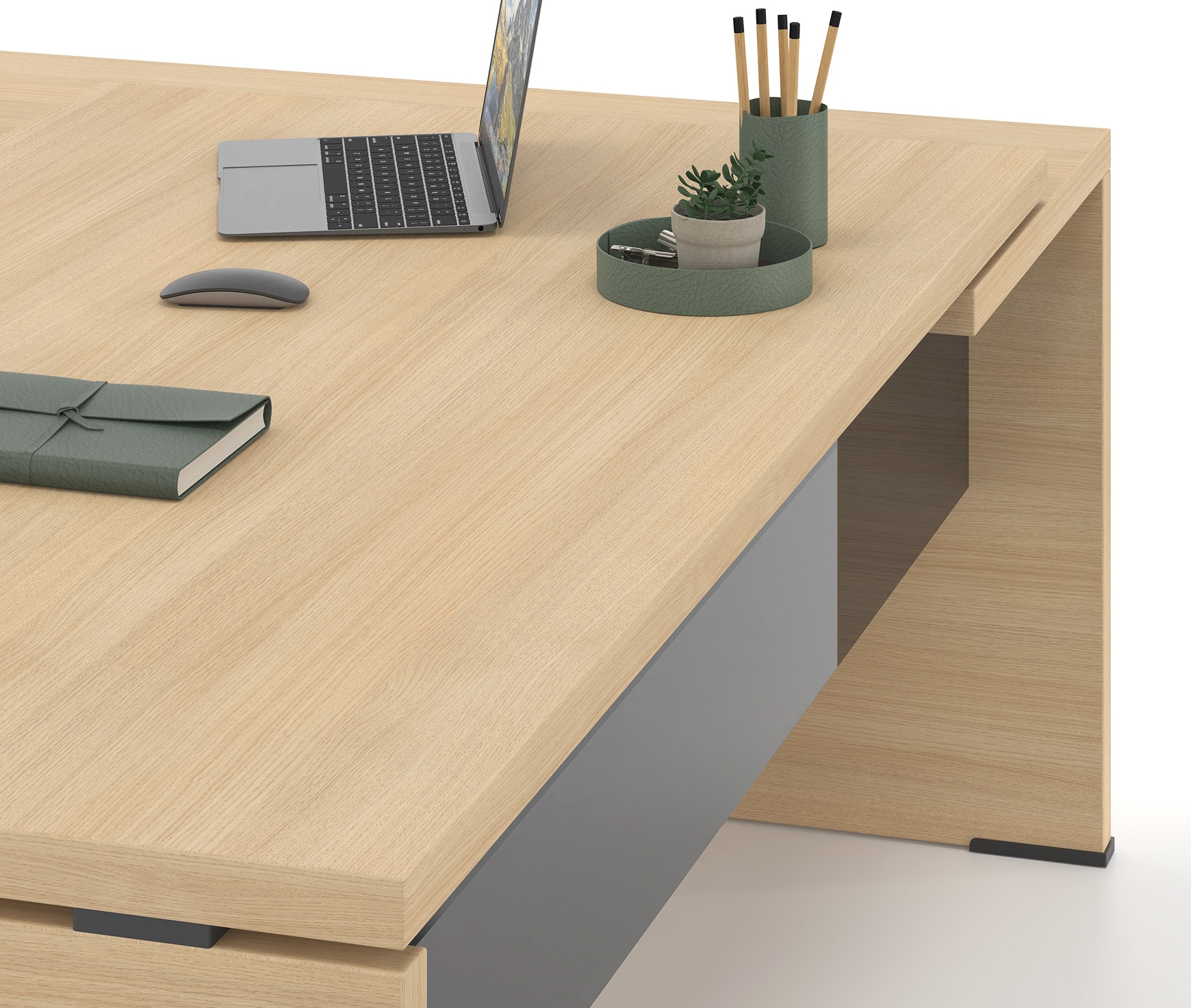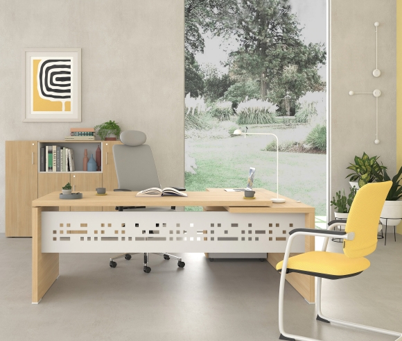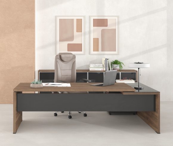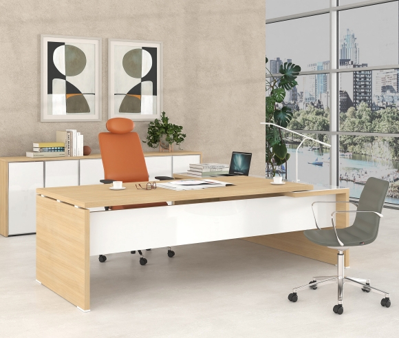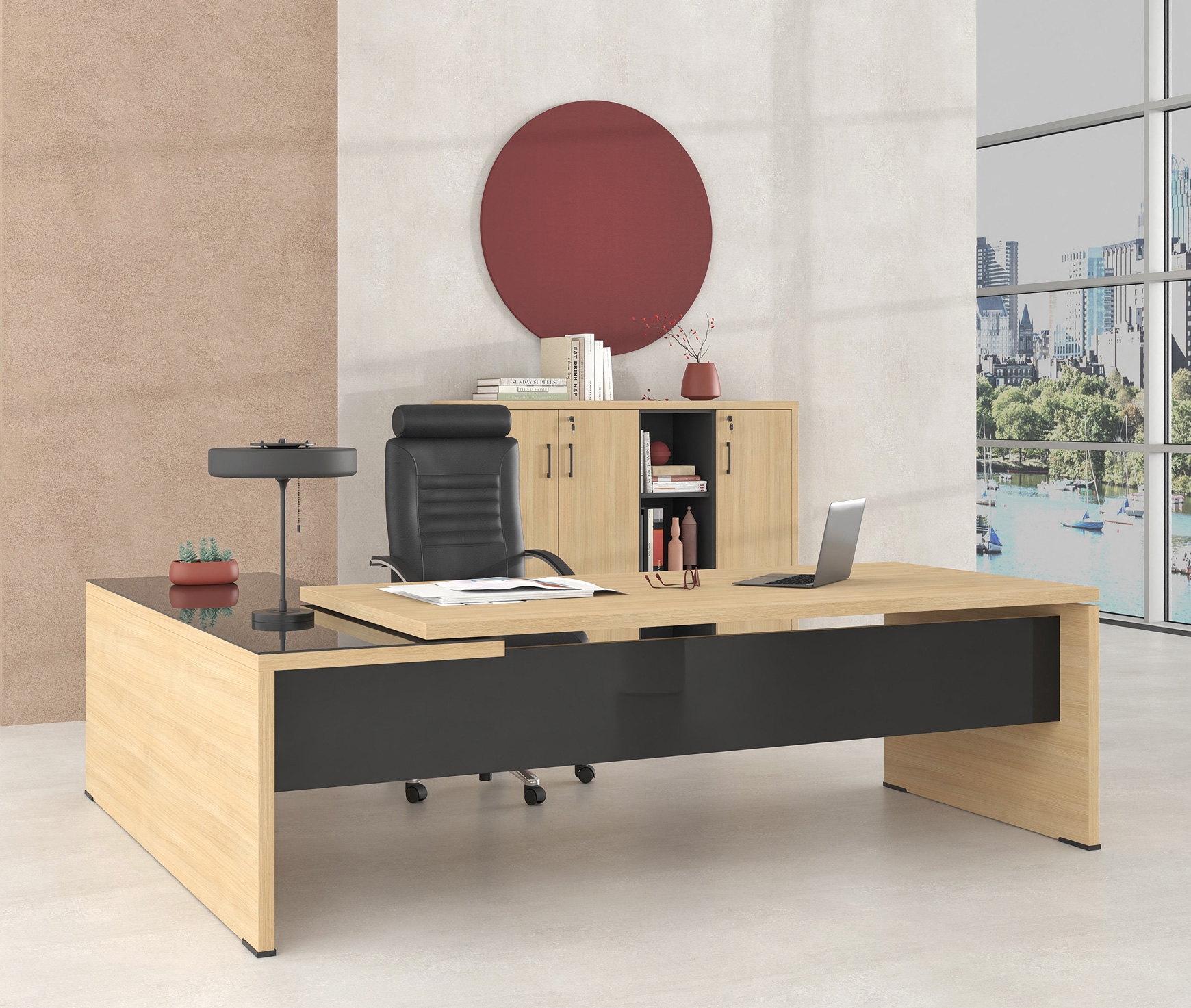 ΥΨΗΛΗ ΑΙΣΘΗΤΙΚΗ – Οι διαφορετικοί συνδυασμοί υλικών δημιουργούν ένα γραφείο υψηλής αισθητικής. Η δυνατότητα επιλογής μετώπης από μοριοσανίδα μελαμίνης, γυαλί ή μέταλλο σε συνδυασμό με την προαιρετική γυάλινη επιφάνεια της προέκτασης, δίνουν μια μοντέρνα πινελιά και κάνουν το διευθυντικό γραφείο LYSIS PLUS ακαταμάχητο
