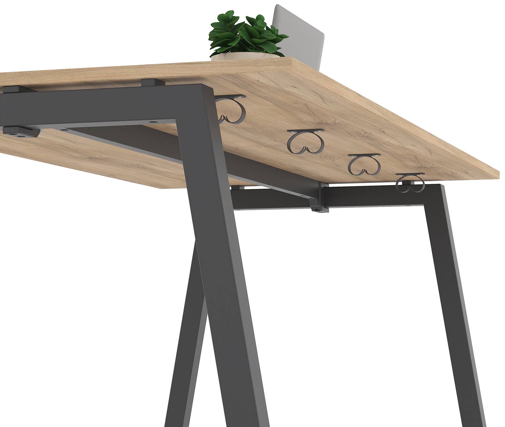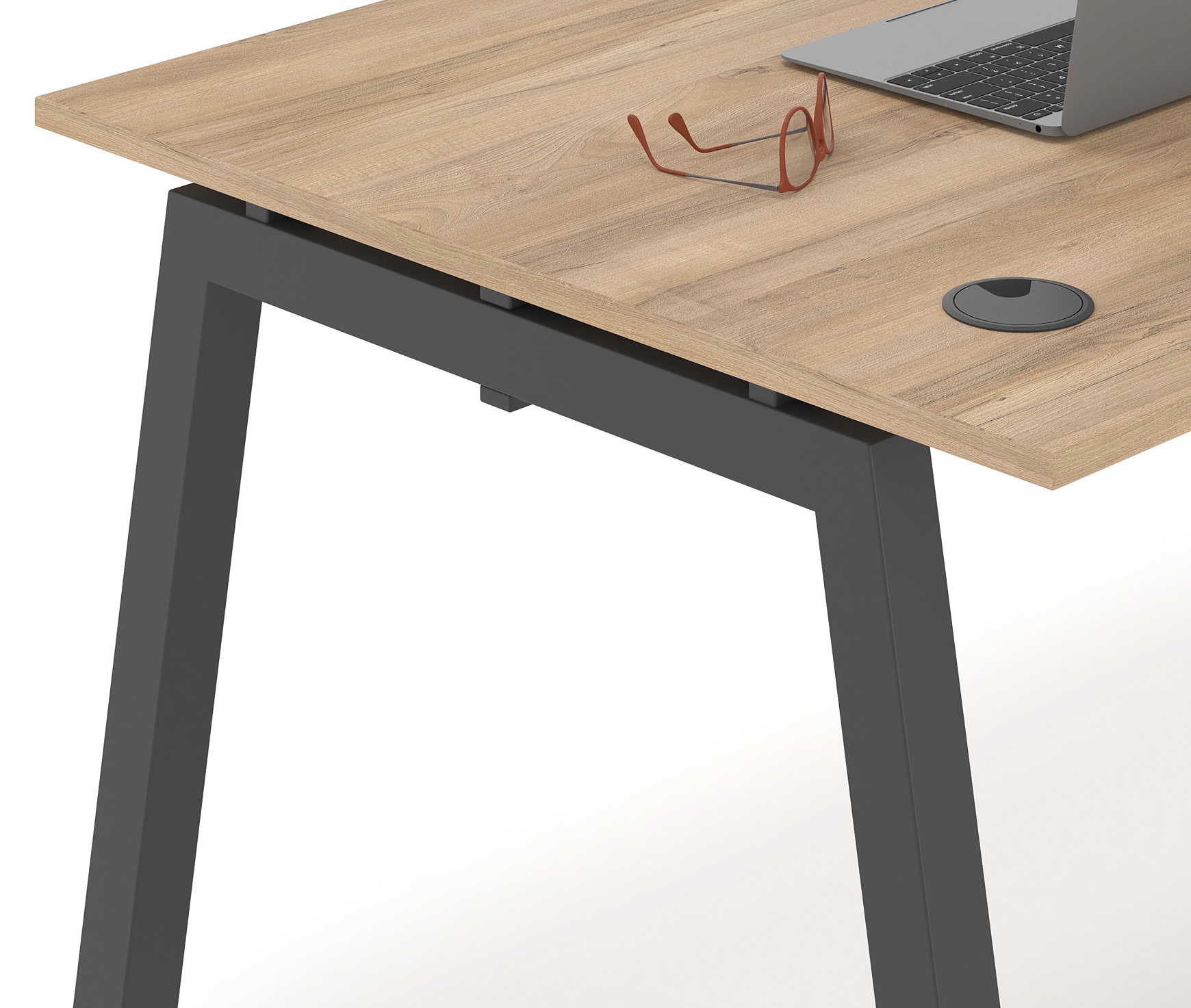 ΕΥΚΟΛΗ ΣΥΝΑΡΜΟΛΟΓΗΣΗ - Ο σκελετός της σειράς ΝΕΟ είναι σχεδιασμένος με τέτοιο τρόπο ώστε να επιτυγχάνεται πολύ εύκολα και γρήγορα η συναρμολόγηση του. Το μεταλλικό πλαίσιο έρχεται ήδη προσαρτημένο στην επιφάνεια του γραφείου και απομένει το βίδωμα συνολικά 4 βιδών στους ειδικά διαμορφωμένους κόμβους των στηριγμάτων των γραφείων για την ολοκλήρωση της συναρμολόγησης