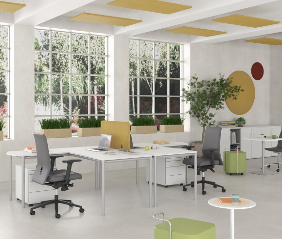 Ένα εργασιακό περιβάλλον με πρωτότυπο χαρακτήρα κάνει τους ανθρώπους πιο αφοσιωμένους και βοηθά να οικοδομήσουν και να διατηρήσουν μια στενότερη σχέση με μια εταιρεία. Η σειρά Slim χάρη στις απλές και σύγχρονες γραμμές βοηθά στην διαμόρφωση ενός ξεχωριστού χώρου. Το κύριο στοιχείο της σειράς αποτελεί το στρογγυλό μεταλλικό κάθετο στήριγμα και ο αφανής τρόπος σύνδεσης με το πλαίσιο στήριξης της επιφάνειας. Η μεγάλη γκάμα διαστάσεων και χρωματικών επιλογών συντελούν στη δημιουργία μιας μοναδικής ατμόσφαιρας στο χώρο εργασίας