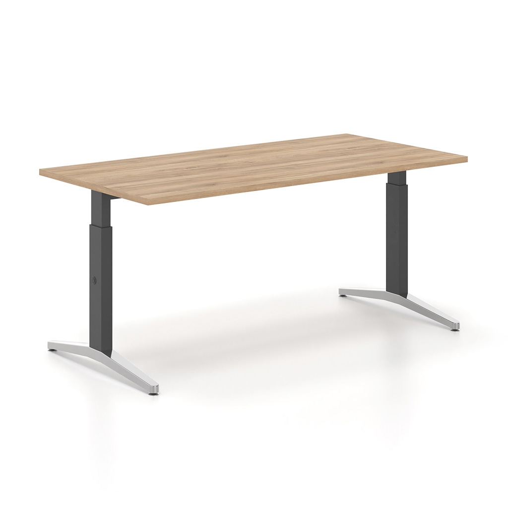 Η σειρά γραφείων ALMA εμπλουτίστηκε με σχεδιαστικές λύσεις και προτάσεις, που ανταποκρίνονται στις σημερινές ανάγκες ευελιξίας και εργονομίας στο σύγχρονο χώρο εργασίας. Χάρη στα τηλεσκοπικά, μεταλλικά, κάθετα στηρίγματα σχήματος Τ της σειράς ALMA K, επιτυγχάνεται εύκολα και γρήγορα η ρύθμιση του γραφείου καθ’ύψος