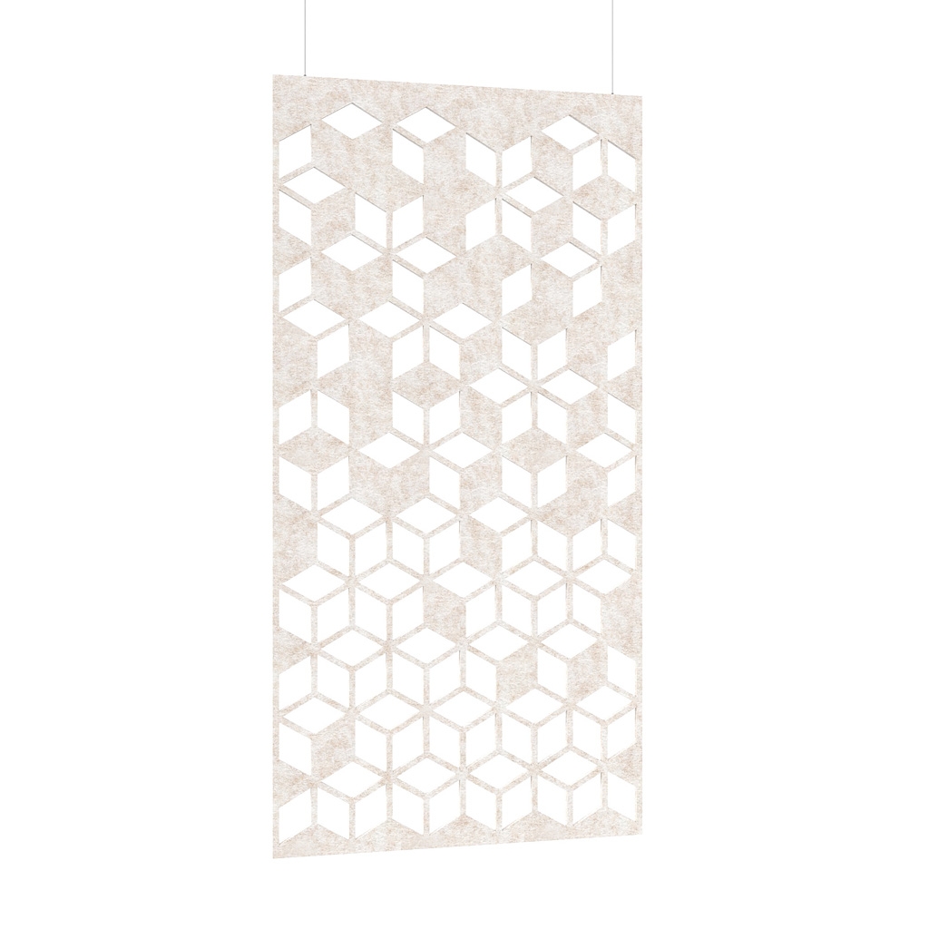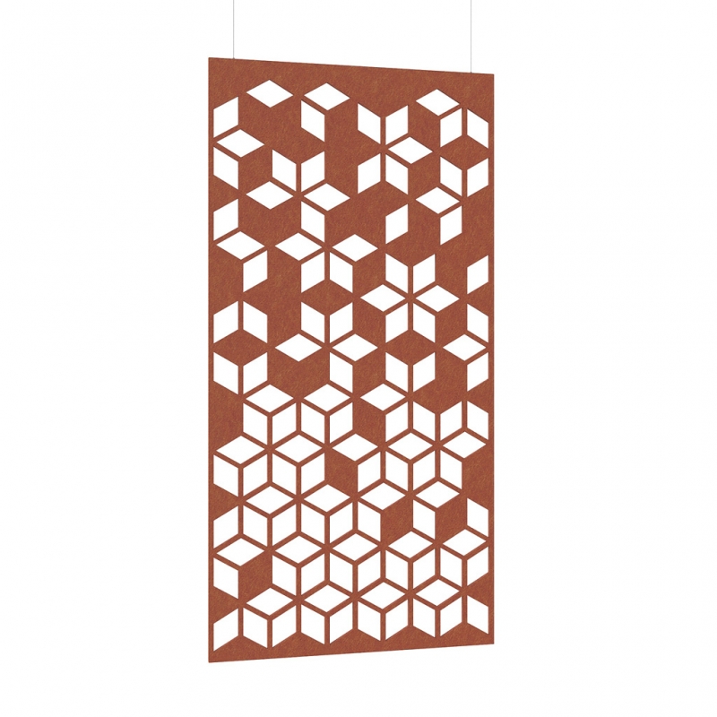 Τα αναρτώμενα επί οροφής ηχοαπορροφητικά πάνελ διατίθενται σε ορθογώνιο και τετράγωνο σχήμα. Κατασκευασμένα επίσης από 100% PET τσόχα πάχους 18 mm, προσφέρουν υψηλή ηχοαπορρόφηση και αισθητική ισορροπία στον χώρο. Η ανάρτηση επί οροφής επιτυγχάνεται μέσω ρυθμιζόμενου σε ύψος συστήματος κρέμασης, επιτρέποντας προσαρμογή στις ανάγκες κάθε περιβάλλοντος.