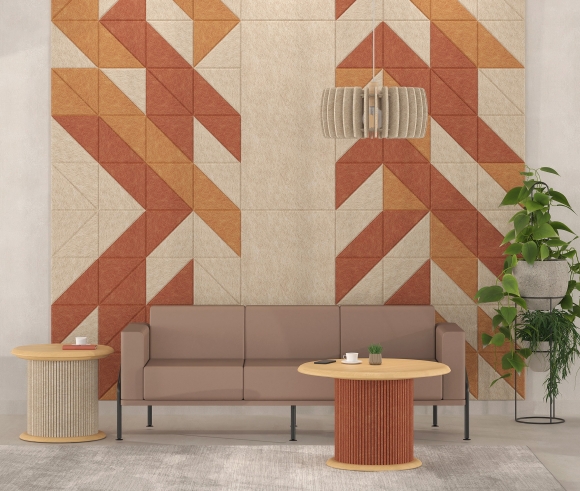 ΥΛΙΚΟΤΗΤΑ ΚΑΙ ΑΚΟΥΣΤΙΚΗ ΑΝΕΣΗ - Η επένδυση της βάσης με τσόχα PET προσδίδει βάθος και υφή στο τραπεζάκι, συμβάλλοντας παράλληλα στη βελτίωση της ακουστικής ποιότητας του περιβάλλοντος, στοιχείο ιδιαίτερα σημαντικό σε χώρους αναμονής.