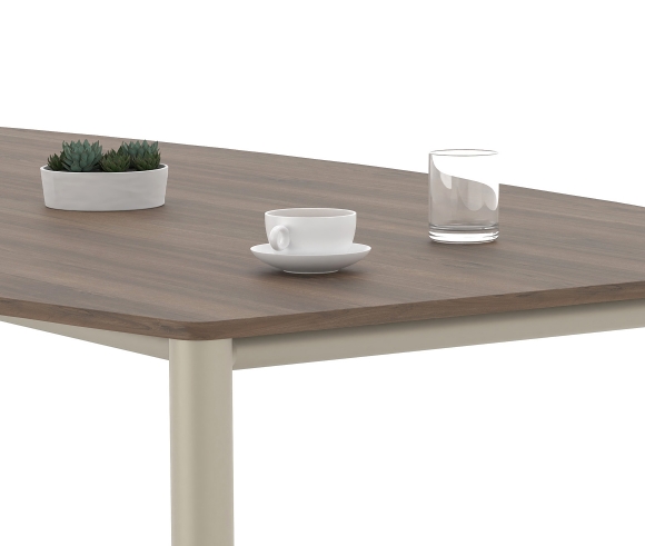 Ένα εργασιακό περιβάλλον με πρωτότυπο χαρακτήρα δημιουργεί αίσθημα ευεξίας και δημιουργίας. Η minimal κατασκευή υψηλής τεχνολογίας, η κομψή παρουσία στον χώρο και η λειτουργικότητα χαρακτηρίζουν το γραφείο συνεδριάσεων SLIM. Η επιφάνεια εργασίας είναι κατασκευασμένη από μοριοσανίδα επενδεδυμένη με μελαμίνη. Ο σκελετός προσφέρεται με σταθερό ύψος 730 mm. Ενσωματωμένοι ρεγουλατόροι εξομαλύνουν και διασφαλίζουν την σταθερότητα σε ανισόπεδα δάπεδα. Η σύνδεση των επιμέρους μεταλλικών στοιχείων επιτυγχάνεται χάρη στους χυτοπρεσσαριστούς κόμβους αλουμινίου. Η ολική απουσία συγκολλήσεων επιτρέπει την πλήρη συναρμολόγηση και αποσυναρμολόγηση του.