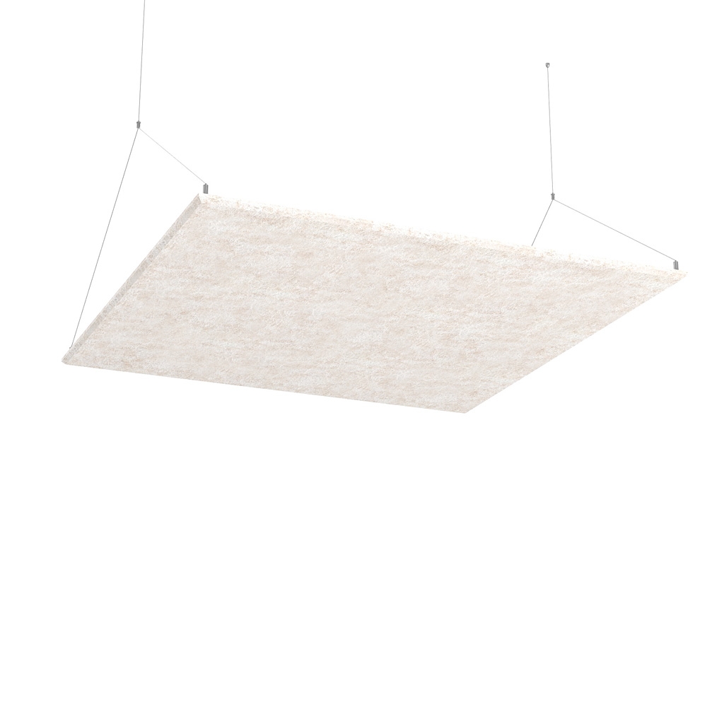 Ceiling-suspended acoustic panels are available in rectangular and square shapes. Also made from 100% PET felt with a thickness of 18mm, they provide high sound absorption and aesthetic balance in the space. Ceiling suspension is achieved via an adjustable-height hanging system, allowing adaptation to the needs of any environment.