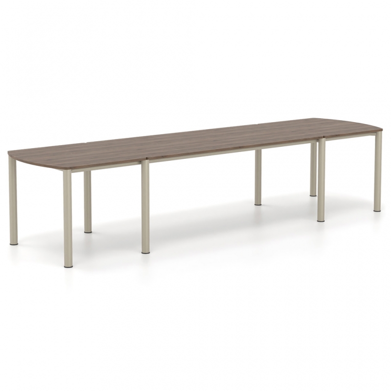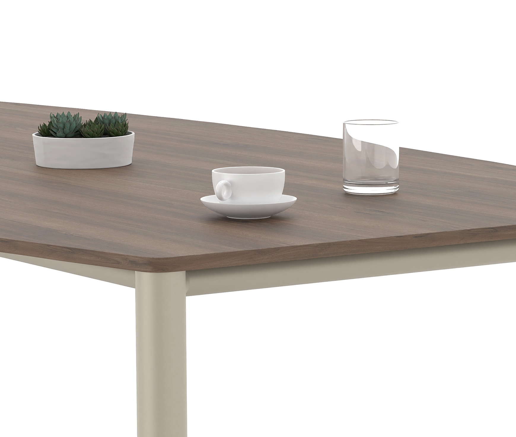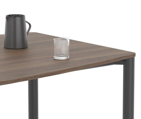 A working environment with an original character creates a feeling of well-being and creativity. The minimal high-tech construction, the elegant presence in the space and the functionality characterize the SLIM conference desk. The work surface can be made either of extra clear glass, or of chipboard covered with veneer or covered with melamine. The frame is available fixed INOX or adjustable in height. The adjustable one is a combination of electrostatically painted steel and INOX, the adjustment range is 650 – 850 mm. Integrated regulators smooth out and ensure stability on uneven floors. The connection of the individual metal elements is achieved thanks to the die-cast aluminum nodes. The total absence of welds allows for complete assembly and disassembly.