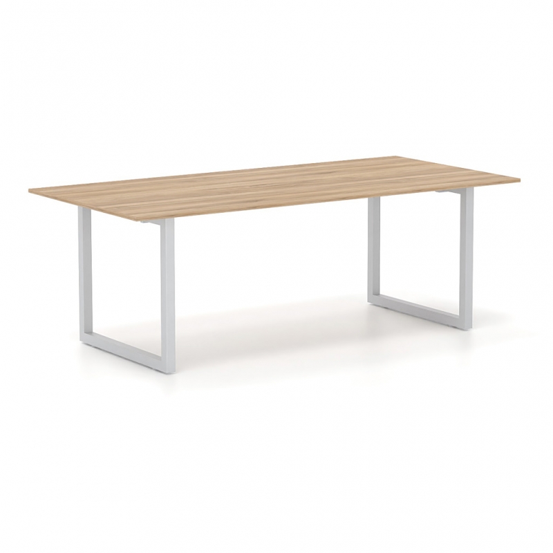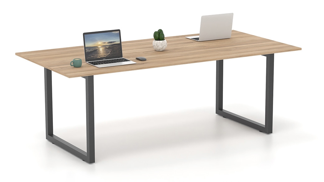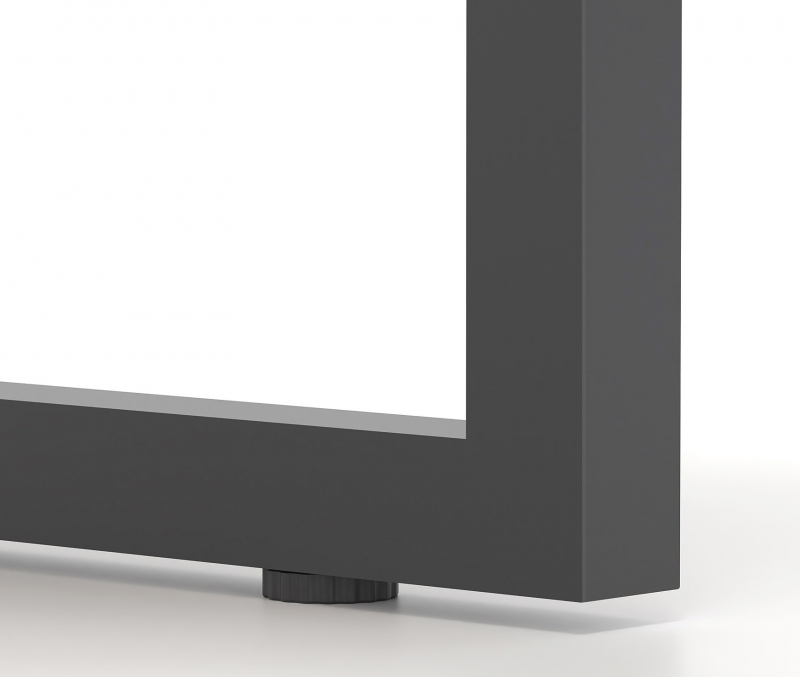 The professional conference desk NEO O is characterized by its simplicity and modern design. It is ideal for spaces that require a modern aesthetic approach. It has a special design with the supports in a rectangular frame. The frame is made of a steel profile with a rectangular section. The surface is made of 18mm melamine chipboard, it protrudes from the legs, thus offering greater ergonomics and comfort to the users. The overall functionality of the conference desk is completed by the optional rosette, nickel-plated or painted, and the cable channel under the surface.