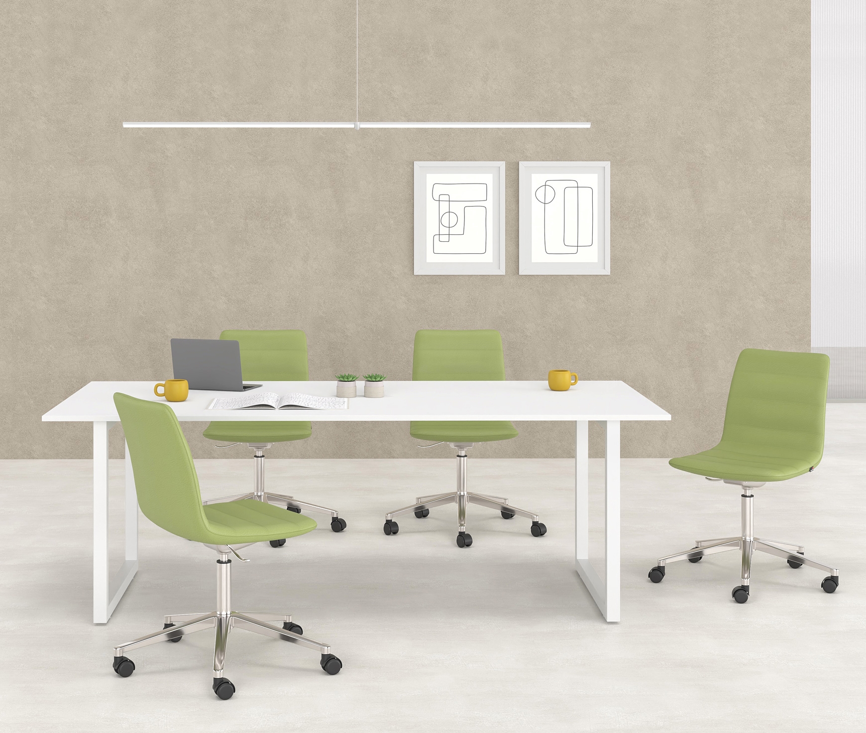 The NEO series is characterized by simplicity and modern design. It is ideal for spaces that require a modern aesthetic approach. It impresses with its simple, clear design language as well as its high quality. The profile of the series is completed by the optically floating worktop above the metal support frame as well as the rectangular frame supports. With the possibility of configuration in color and size, the NEO O conference desks are ideally adapted to any interior space.