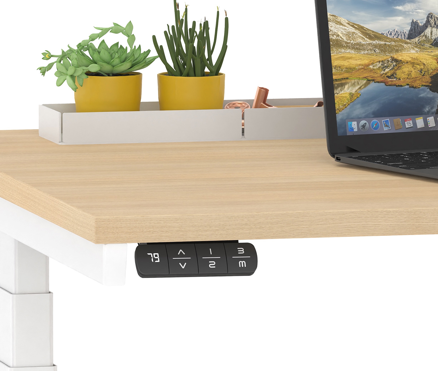 BLUETOOTH CONTROLLER IOS/ANDROID/DESKTOP CONNECTIVITY – Bluetooth wireless connection allows for remote control of the desk, useful statistics as well as programming of smart visual alerts for switching between standing and sitting work positions