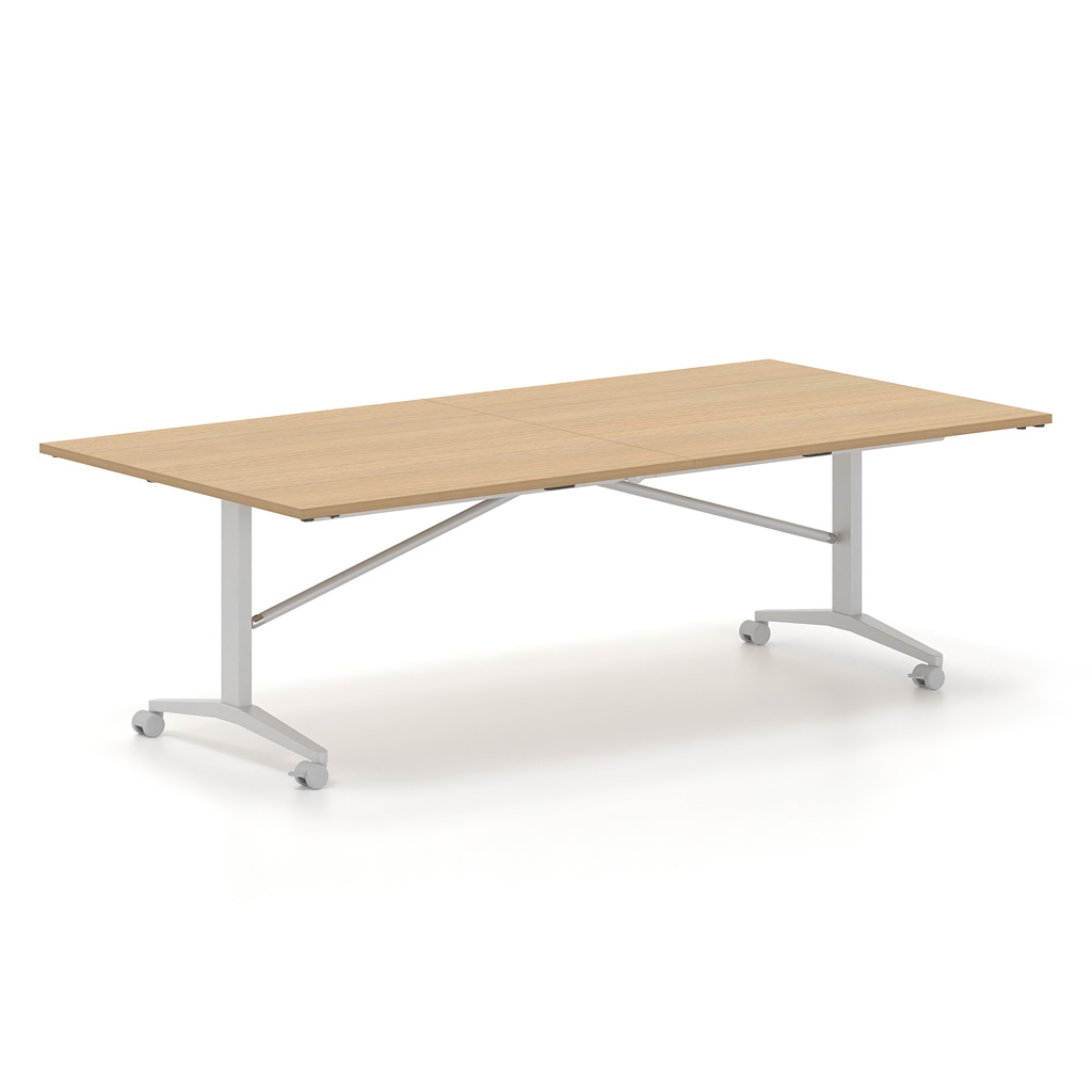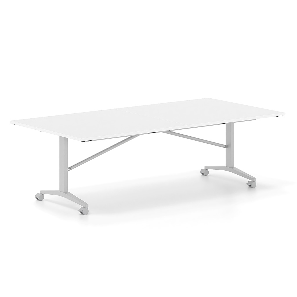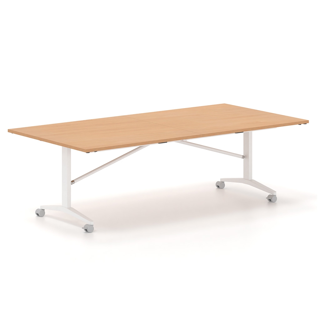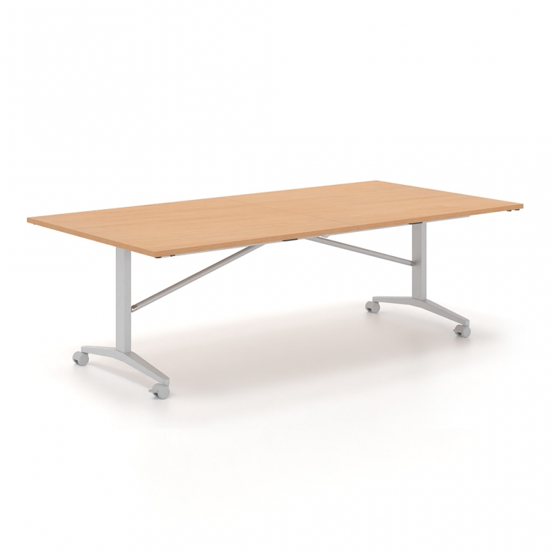 A desk with clean lines in a rectangular shape. The ALMA CO professional foldable conference desk has the right architecture for long hours of use and maximum flexibility. The foldable surface with the foldable frame make the desk the ideal choice for conference rooms, hotels, catering, classrooms, etc., as they allow quick and appropriate adaptation of the work spaces. It has double wheels with brakes for easy movement. At the same time, the desks have the possibility to develop and connect with each other either horizontally or vertically. In addition, they can be placed next to each other, when they are in the closed position, for maximum space saving.
