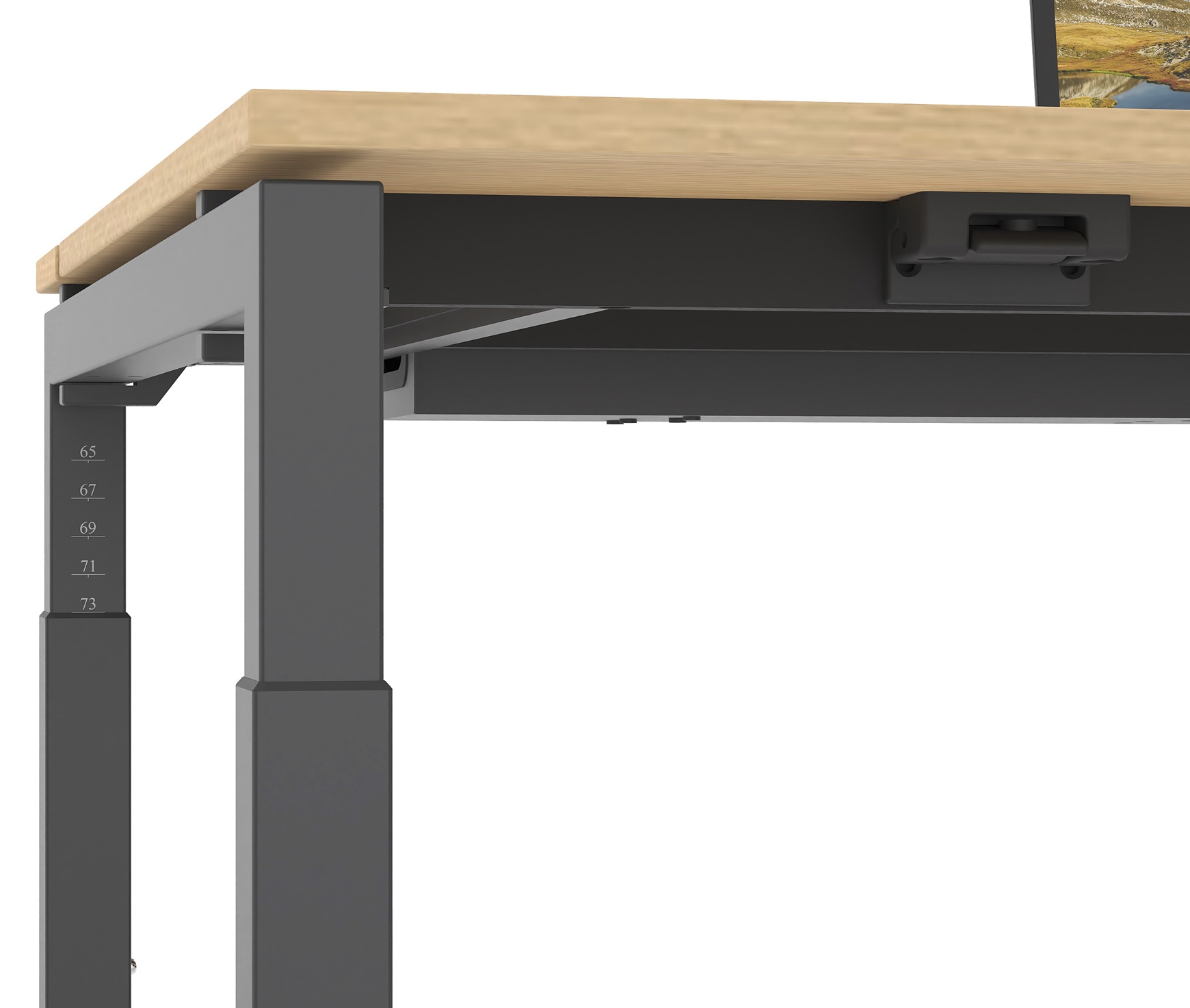 >> Adjustable desk height 650 - 850 mm thanks to the telescopic supports