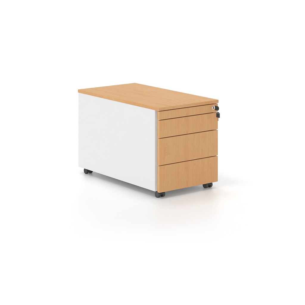 Pedestals made of metal casing, of high quality and aesthetics. They are equipped with a decorative lid and melamine chipboard trays in a wide variety of colors. It is available with a depth of 80 cm. The pedestals are available on castors or fixed with sliders. In the case of castors, there is the option of adding wheels with brakes. They have metal drawers with hidden sliding guides and full (100%) opening, an antitilt system (does not allow opening more than one drawer), as well as a "soft close" closing damping system. All pedestals are equipped with safety locks. At the same time, the drawers have a suitable configuration so that it is possible to add transverse partition walls with a variable position for better organization of the storage space. They are available in a wide variety of colors.