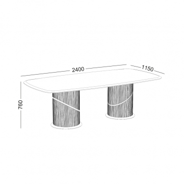 ˃˃ Two cylindrical bases with vertical grooves and curved details, adding a sculptural dimension and elegance.