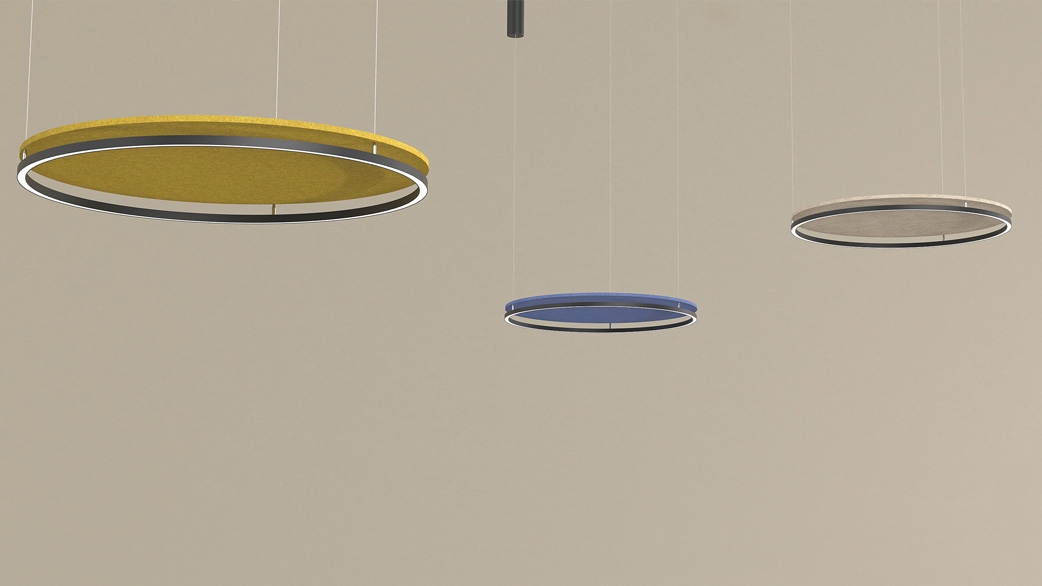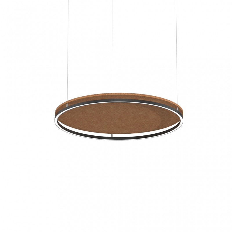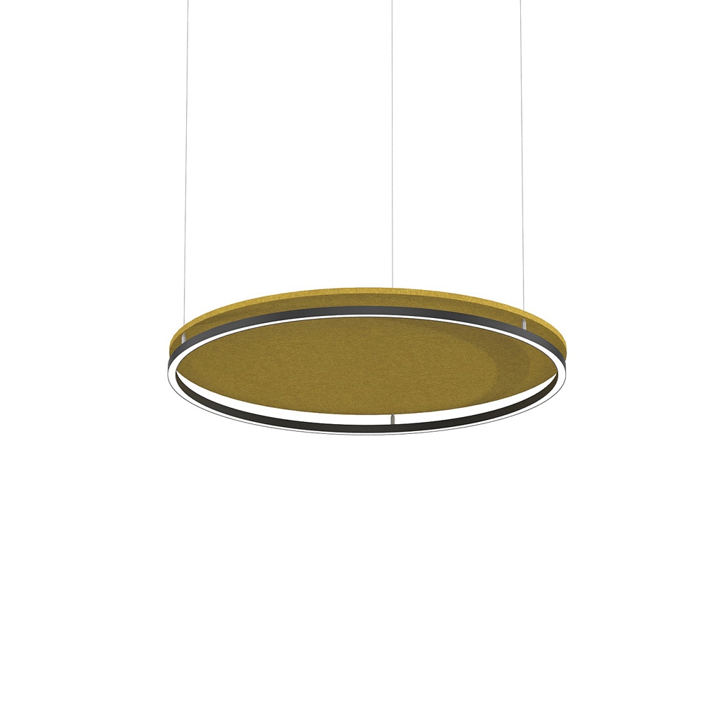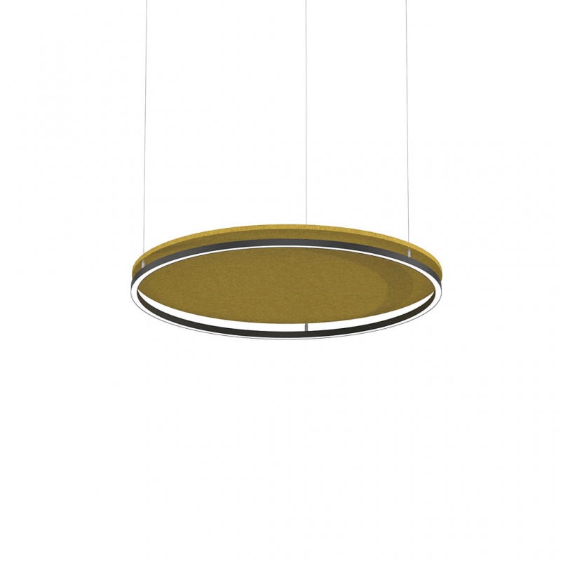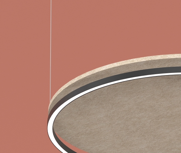 PHOS stands out for its simple yet dynamic presence: a flat ring with felt that functions both as a luminaire and as a decorative element. The felt covering provides sound-absorbing properties, while its clean design makes it ideal for offices, meeting rooms, and hospitality areas. Available in a variety of colors, it allows adaptation to different interior design styles.