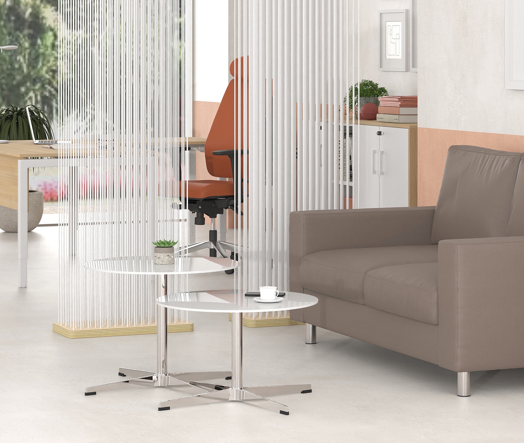 The SLIM series is a modern and innovative proposal for your office. Designed according to European specifications and manufactured following the ecological corporate philosophy, always aiming at the balance between man and the environment. The wide range of materials, colors and dimensions make it easily adaptable to any space. A coffee table with a simple but dynamic design, thanks to the glass surface