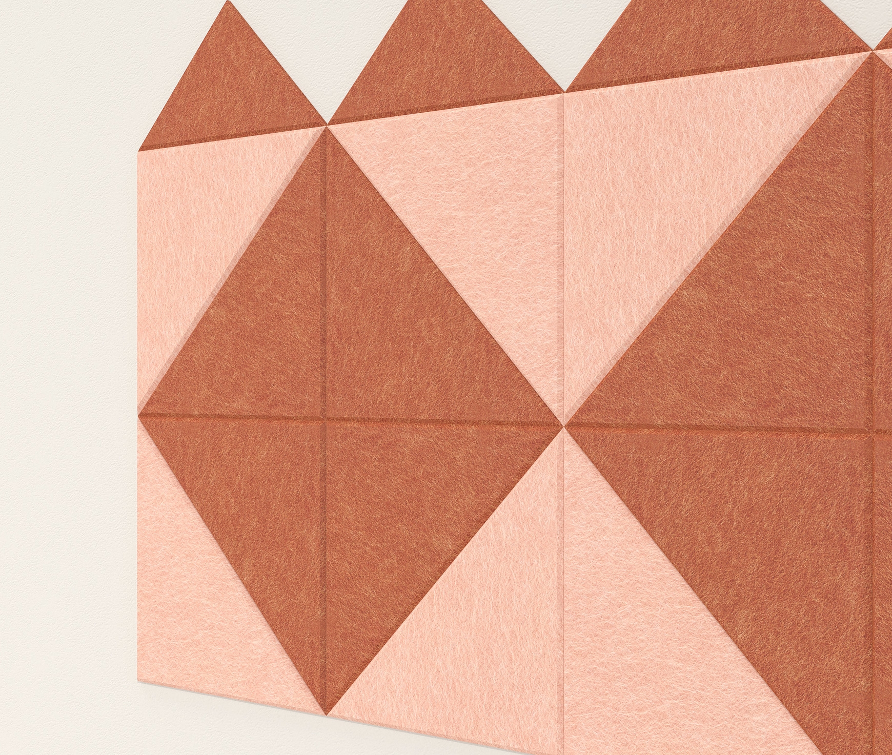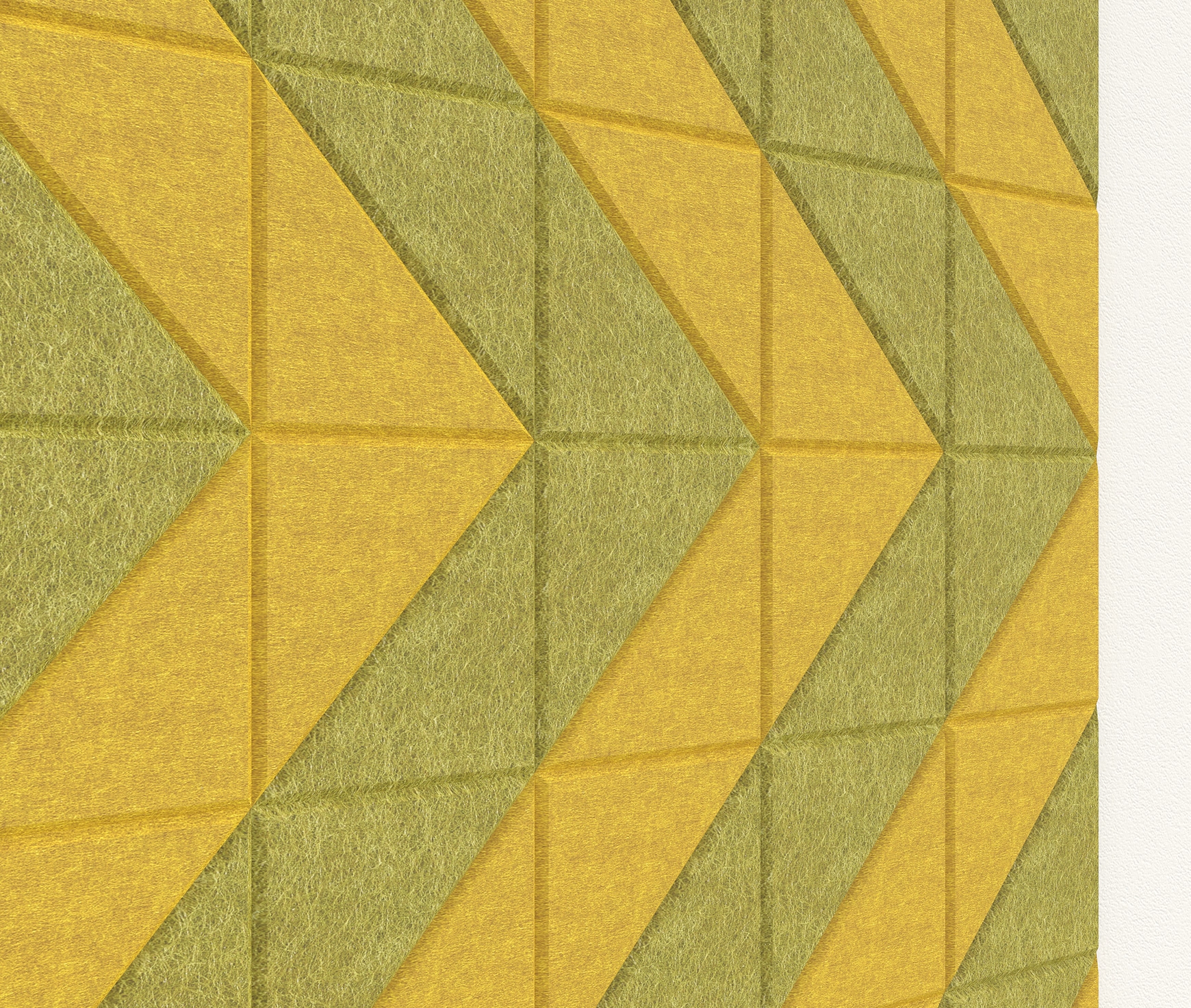 Wall-mounted acoustic panels are available in rectangular, square, and round shapes. They have a thickness of 18mm and are made from 100% PET felt (60% recycled PET fibers + 40% virgin PET fibers), a material with excellent sound-absorbing properties. Wall installation is achieved using suitable mounting materials or, alternatively, on the ceiling with a dedicated suspension system.