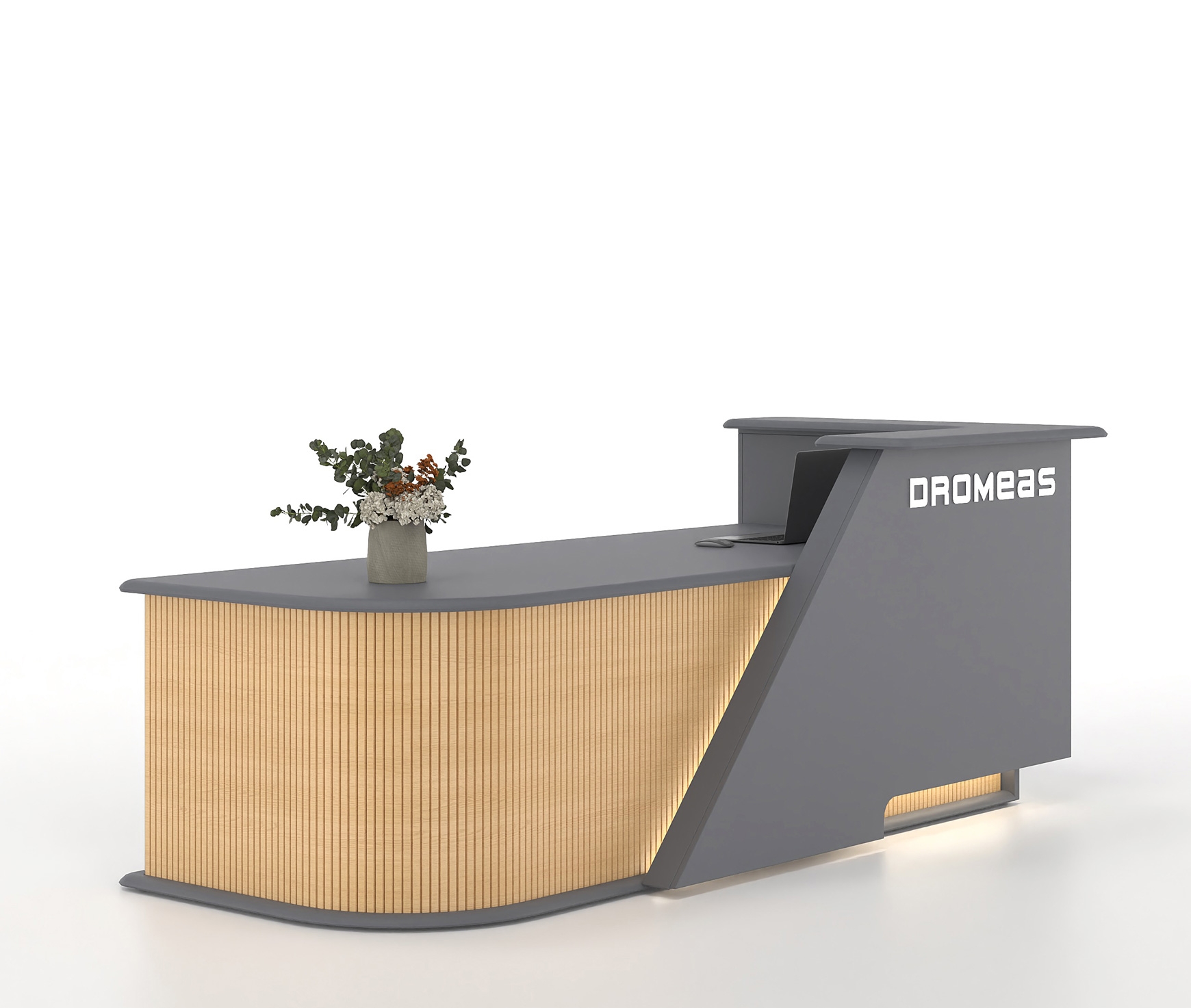 The new CALYPSO reception desk by DROMEAS blends minimalism with refined luxury. The harmonious balance between matte surfaces and natural wood creates a welcoming atmosphere, while the clean lines and integrated LED lighting exude elegance and design excellence. Calypso transforms every reception area into an experience of aesthetics and functionality.