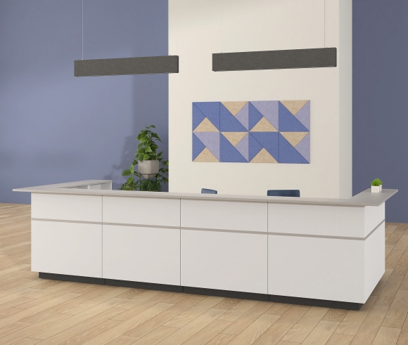 The SILVER LINE reception counter of curved and straight sections is a sure choice for an impressive first contact. Thanks to the wide variety of colors and the possibility of adding glass surfaces, it creates a special touch in your reception room.