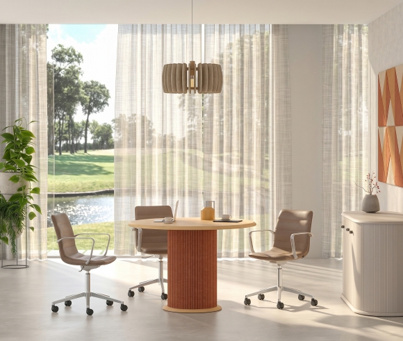 The ANASA SILENCE round table functions as an architectural element that organizes space without adding visual weight. Its circular form introduces a sense of continuity and balance, making it ideal for open space environments where clear yet discreet spatial definition is required.
