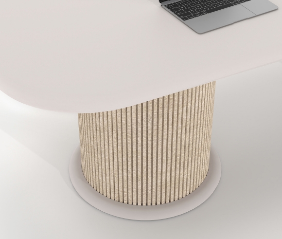 MATERIALS AND ACOUSTIC COMFORT - The leg upholstery made of 100% PET felt, consisting of 60% recycled PET fibers and 40% virgin PET fibers, adds depth and texture to the desk. The material contributes to improved acoustic perception, creating a calmer and more focused working environment.