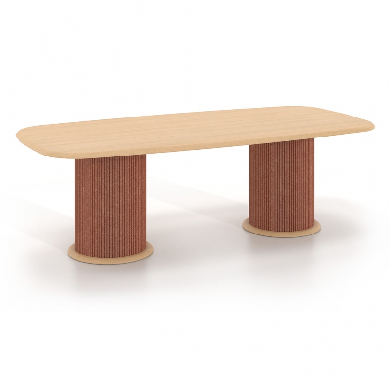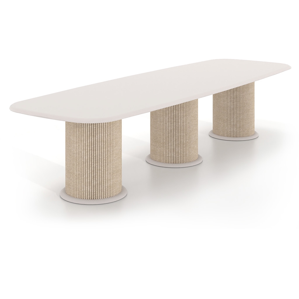 ERGONOMICS - The spacious work surface and solid cylindrical bases ensure comfort, stability, and an ergonomic layout suitable for hosting both small and large groups during meetings and collaborative sessions.