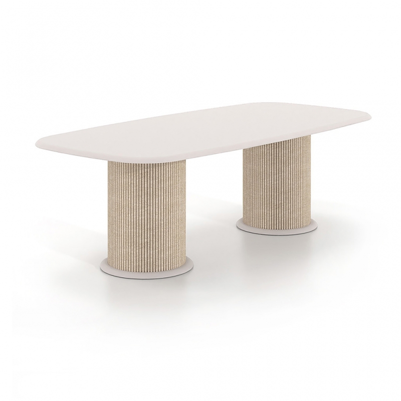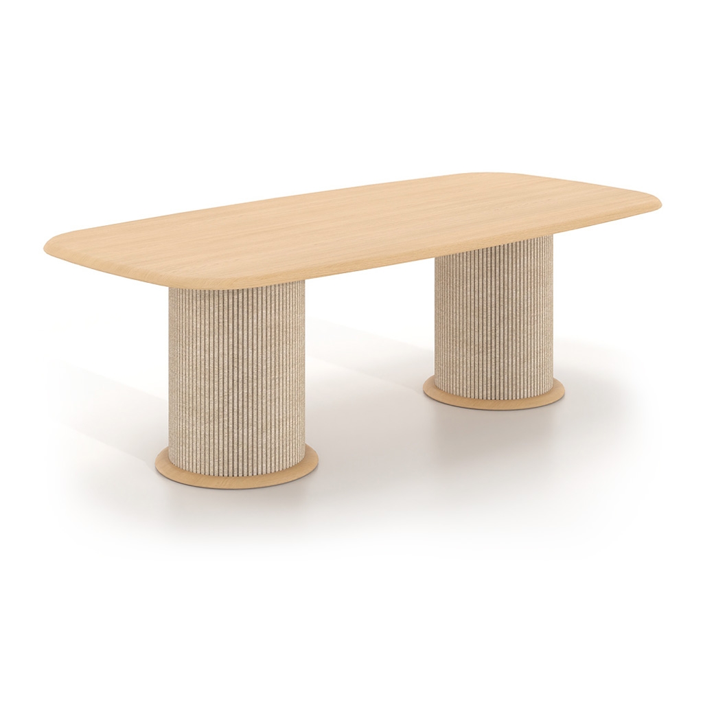 AESTHETIC EXCELLENCE - The characteristic curved lines of the ANASA series, combined with the cylindrical bases and the soft texture of PET felt, create a composition of high aesthetic value. The oval tabletop highlights the quality of the materials, giving the table a contemporary and timeless character, suitable for executive offices and conference rooms.