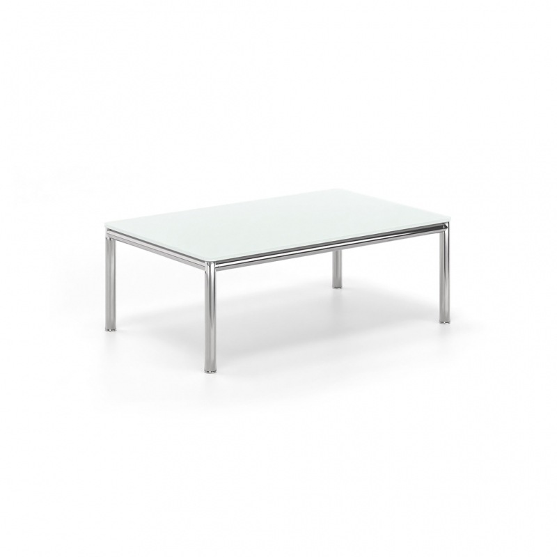 A working environment with an original character creates a feeling of well-being and creativity. The minimal high-tech construction and the elegant presence in the space characterize the coffee table of the SLIM series. The surface is made of extra clear glass and the frame is made of INOX circular section tube. The connection of the individual metal elements is achieved thanks to the die-cast aluminum nodes. The total absence of welds allows for complete assembly and disassembly.