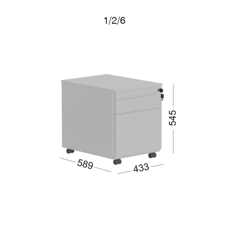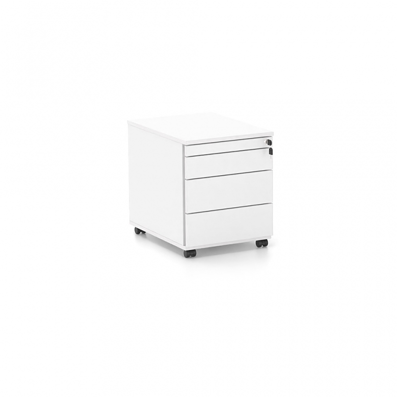 MDF pedestals with lacquer coating of high aesthetics and functionality. They are available in depths of 58.9 cm, 60 cm and 80 cm. The pedestals are available on castors or fixed with sliders. In the case of castors, there is the option of adding wheels with brakes. They have metal drawers with hidden sliding guides and full (100%) opening, an antitilt system (does not allow opening more than one drawer), as well as a "soft close" closing damping system. All pedestals are equipped with safety locks. At the same time, the drawers have a suitable configuration so that it is possible to add transverse partition walls with a variable position for better organization of the storage space. They are available in a wide variety of colors.