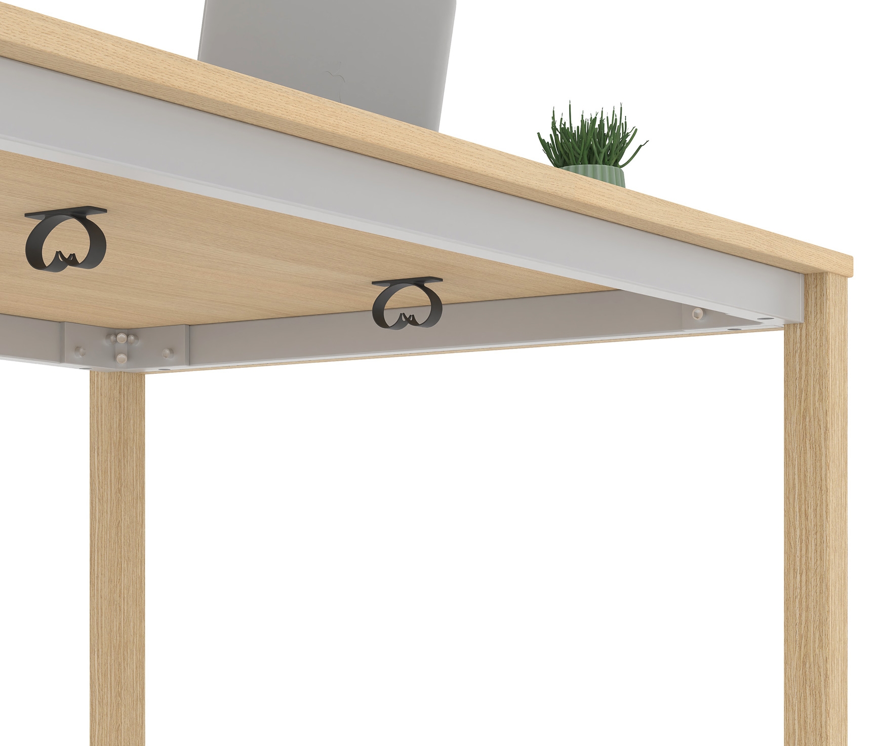 >> Integrated cable grommets at the bottom of the work surface