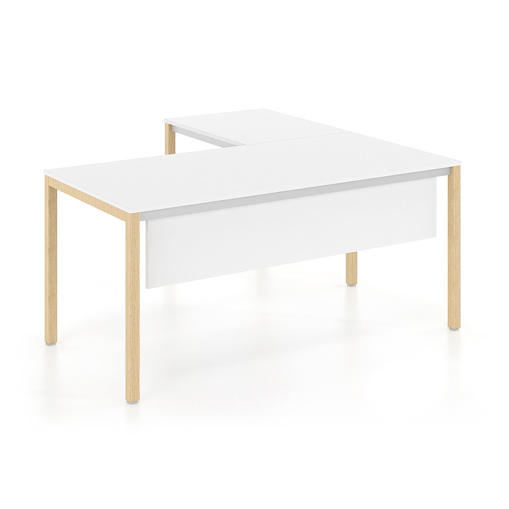 The work desk of the TETRA series was designed to offer its customers competitive and quality products using modern technologies and first-class materials. it has all the quality parameters of DROMEAS products, while the particularly affordable price is the comparative advantage of the series against the competition, making it stand out in the demanding European markets. It has a simple and easy way of assembly, as it requires the screwing of a total of eight (8) screws, so that the legs are attached to the already installed metal frame. The "A" shaped legs and the side traverses are lined with beech wood which is varnished with clear varnish.
