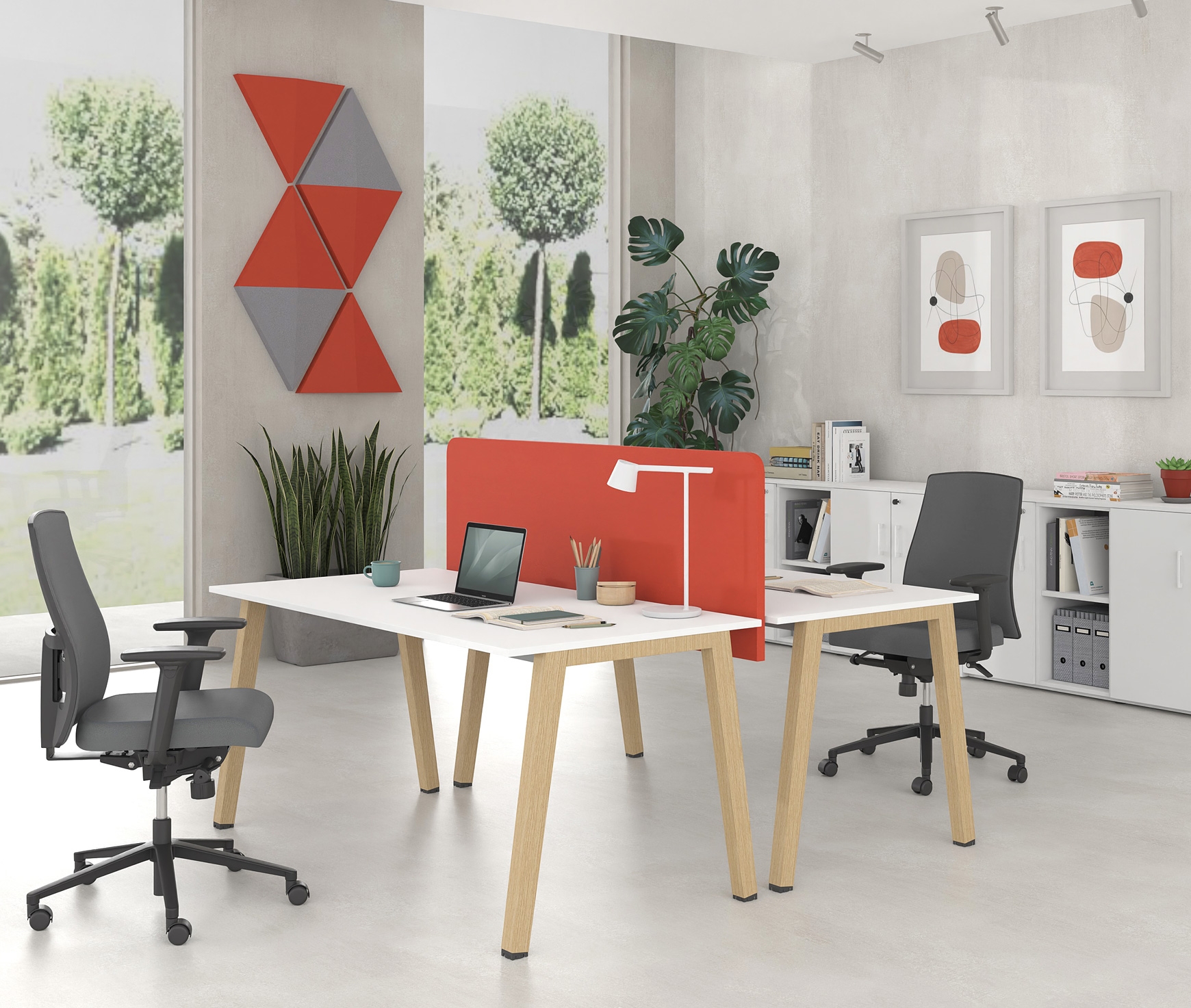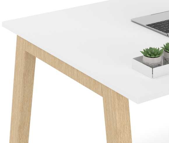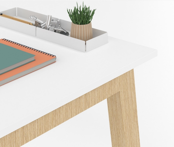 The minimalist design of the TETRA A WOOD desk series allows it to be integrated into both modern and classic work environments. The frame consists of a particularly beautiful mix of materials, metal and wood. Thanks to the wide variety of dimensions, the desks can be integrated both in the office and at home. The "A"-shaped supports and the side traverses are lined with beech wood which is varnished with a transparent varnish. They have a simple and easy assembly method.