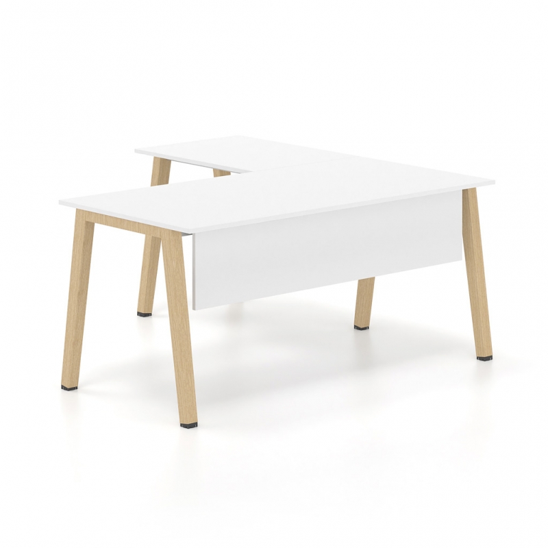 The work desk of the TETRA series was designed to offer its customers competitive and quality products using modern technologies and first-class materials. it has all the quality parameters of DROMEAS products, while the particularly affordable price is the comparative advantage of the series against the competition, making it stand out in the demanding European markets. It has a simple and easy way of assembly, as it requires the screwing of a total of eight (8) screws, so that the legs are attached to the already installed metal frame. The "A" shaped legs and the side traverses are lined with beech wood which is varnished with clear varnish.