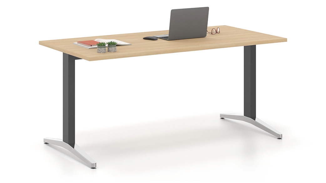 STURDY CONSTRUCTION - Thanks to symmetrical, metal, vertical T-shaped supports, the ALMA desk series stands out for its sturdiness and durability especially after multiple re-assembly
