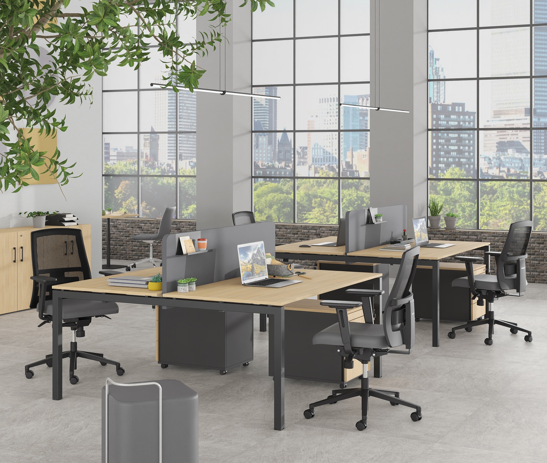 SMOOTH LINES – The NEO series is characterized by simplicity and modern design. The profile of the series is completed by the optically floating work surface above the metal support frame