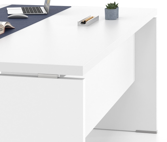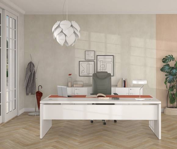 Le bureau VIP est composé de panneaux de particules de 38 mm doublés de placage naturel pour répondre aux préférences de tout cadre exigeant. Alternativement, il est également disponible en laque.