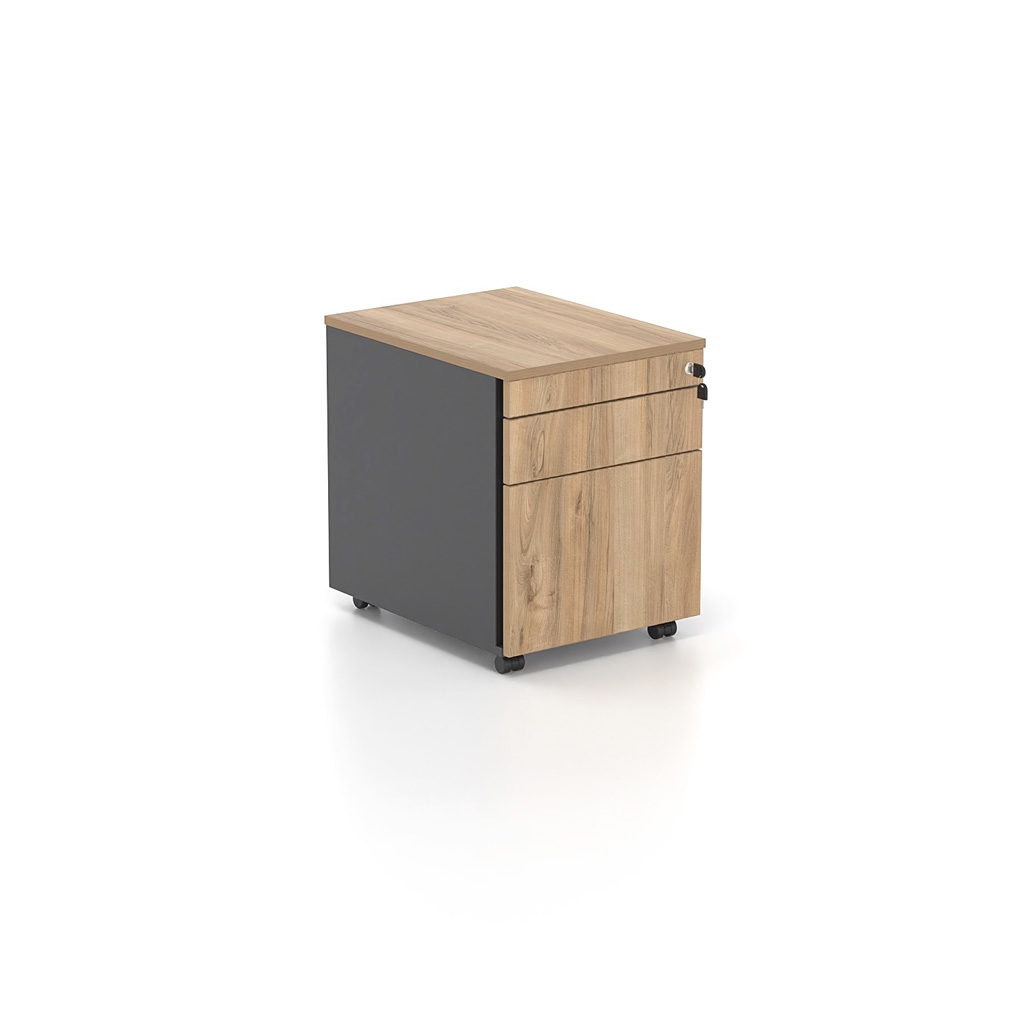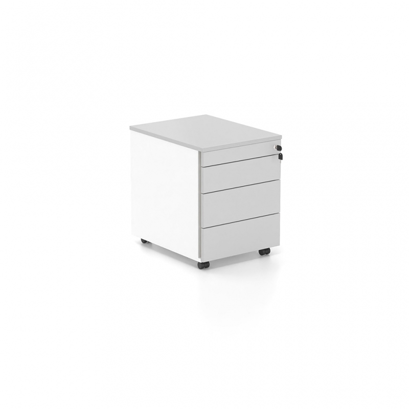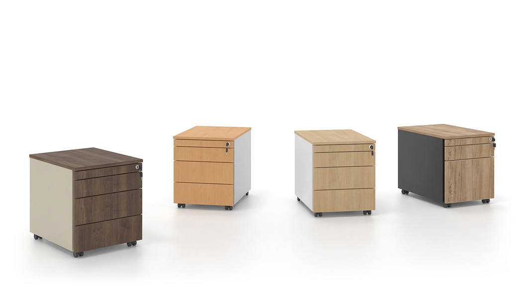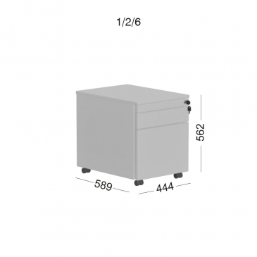 Caissons en métal de haute esthétique et fonctionnalité. Ils sont équipés d’un top et des façades en mélamine dans une grande variété de couleurs. Ils sont disponibles avec une profondeur de 58,9 cm. Les caissons sont disponibles sur roulettes ou fixes avec patins. Dans le cas des caissons mobiles, il est possible d'ajouter des roulettes avec freins. Ils ont des tiroirs en métal avec des avec glissières à roulement télescopiques et une ouverture complète (100%), un système anti-basculement (ne permet pas d'ouvrir plus d'un tiroir), ainsi qu'un système de fermeture en douceur "soft close". Tous les caissons sont équipés de serrures de sécurité. Parallèlement, les tiroirs ont une configuration adaptée permettant d'ajouter des séparateurs à position variable pour une meilleure organisation de l'espace de rangement. Ils sont disponibles dans une grande variété de couleurs.
