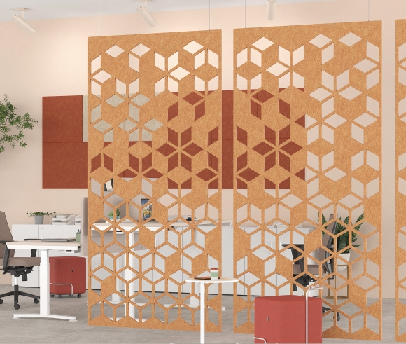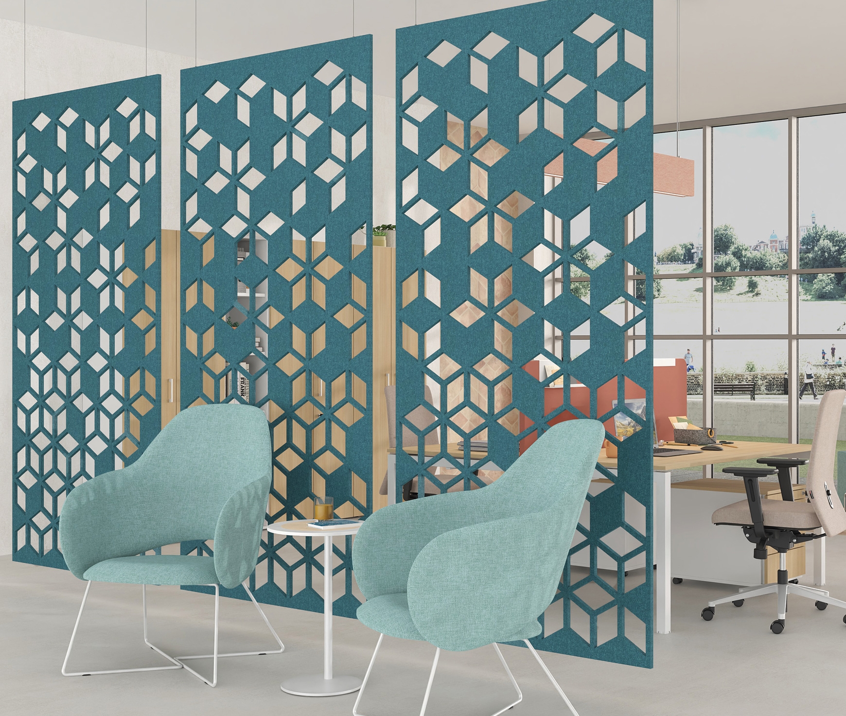 Les systèmes acoustiques de DROMEAS offrent une absorption sonore optimale sur les murs et les plafonds où ils sont installés. Fabriqués en PET à 100 % et d’une épaisseur de 18 mm, ils améliorent l’acoustique des espaces en absorbant les ondes sonores, en régulant la réverbération et en réduisant les bruits gênants, en particulier dans les lieux où la concentration de personnes accentue le problème des réflexions sonores. Parallèlement, leur esthétique contemporaine, disponible dans une variété de modèles et de couleurs, contribue à créer un environnement de travail agréable et harmonieux.