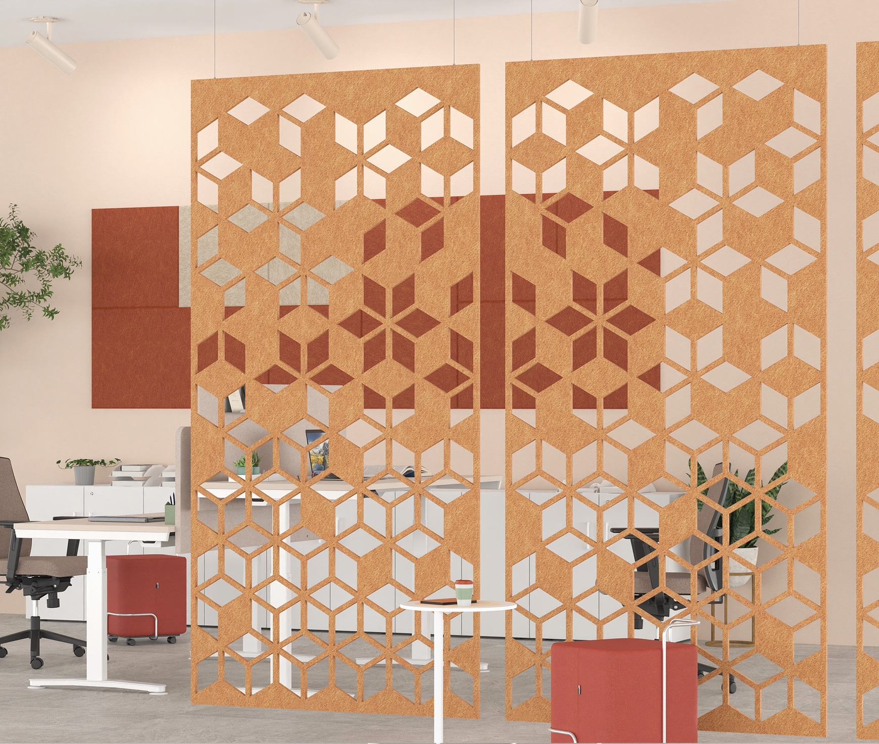 Les panneaux acoustiques suspendus au plafond sont disponibles en formes rectangulaire et carrée. Également fabriqués en feutre 100 % PET d’une épaisseur de 18 mm, ils offrent une forte absorption sonore et un équilibre esthétique dans l’espace. La suspension au plafond se réalise via un système de suspension réglable en hauteur, permettant l’adaptation aux besoins de chaque environnement.