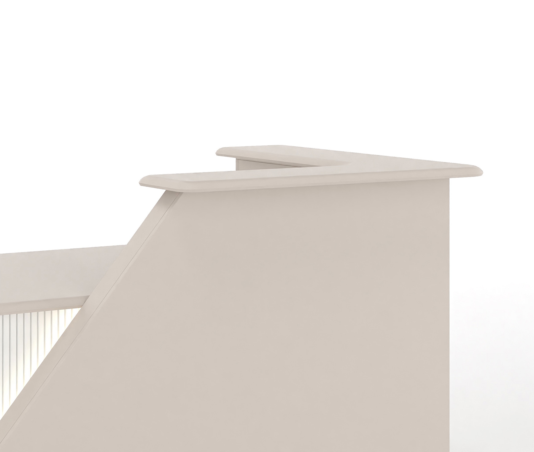 Le comptoir d'accueil Calypso a été conçu pour s'intégrer harmonieusement dans les compositions architecturales contemporaines à forte valeur esthétique. Sa géométrie équilibre linéarité et courbure, ajoutant à la fois dynamisme et clarté à l'espace d'accueil.