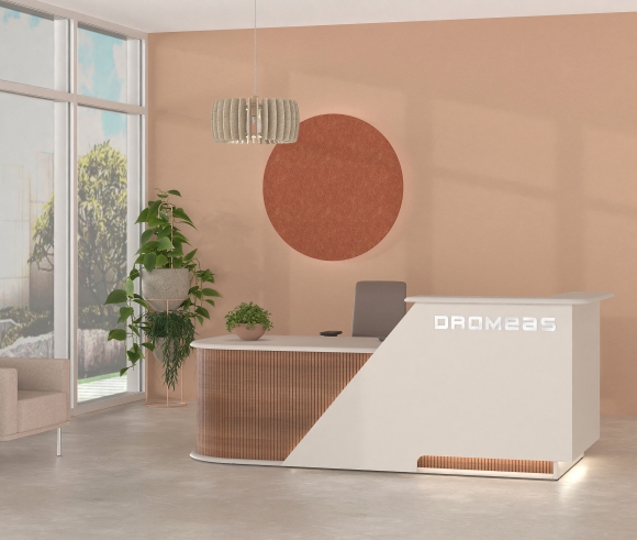 Le nouveau comptoir d'accueil CALYPSO de DROMEAS allie minimalisme et luxe raffiné. L'équilibre harmonieux entre les surfaces mates et le bois naturel crée une atmosphère accueillante, tandis que les lignes épurées et l'éclairage LED intégré respirent l'élégance et l'excellence du design. Calypso transforme chaque espace d'accueil en une expérience esthétique et fonctionnelle.