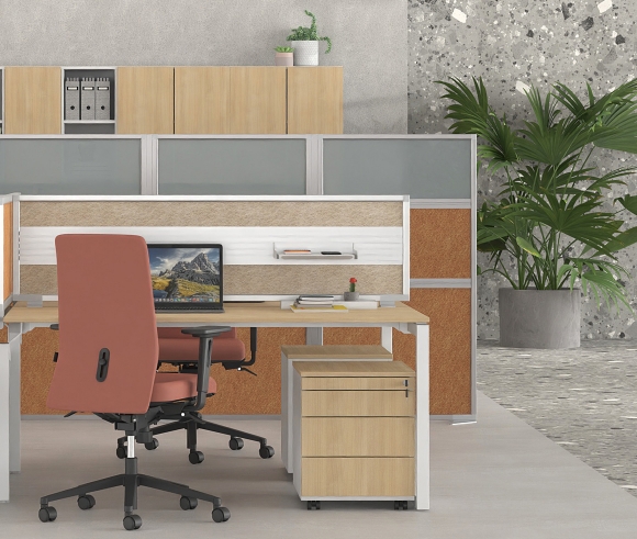 ERGONOMIE – La grande variété de matériaux, les différentes hauteurs ainsi que les rails optionnels pour placer divers accessoires rendent la série Flexi unique, avec une caractéristique dominante de confort et d'ergonomie au bureau.