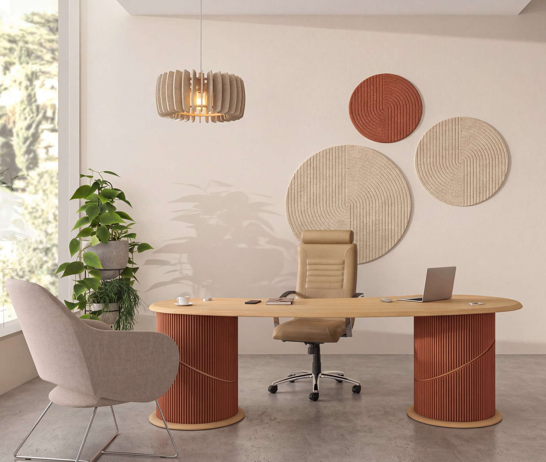 ANASA SILENCE incarne une approche contemporaine du design de bureau, où l’équilibre esthétique rencontre le confort acoustique. Inspiré par le concept de la respiration et de l’harmonie intérieure, il traduit la fluidité et la sérénité en un espace de travail fonctionnel et performant.