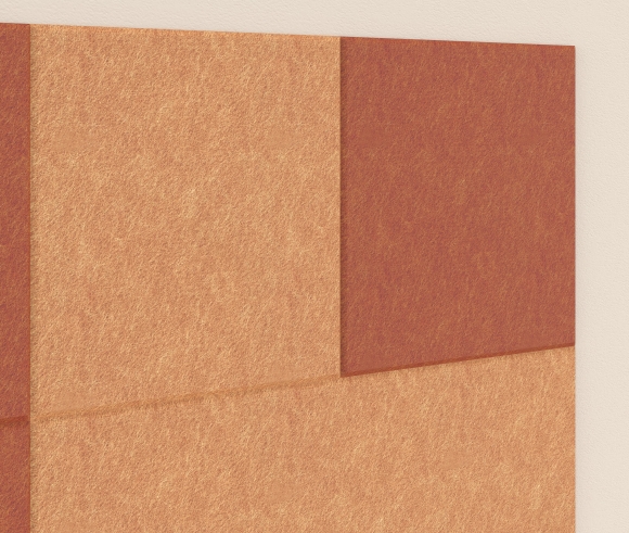 Les panneaux acoustiques muraux sont disponibles en formes rectangulaire, carrée et ronde. Ils ont une épaisseur de 18 mm et sont fabriqués en feutre 100 % PET (60 % fibres PET recyclées + 40 % fibres PET vierges), un matériau aux excellentes propriétés d’absorption sonore. L’installation murale s’effectue à l’aide de matériaux de fixation appropriés ou, alternativement, au plafond avec un système de suspension dédié.