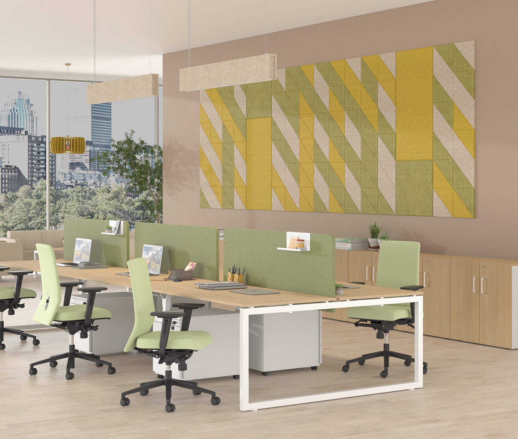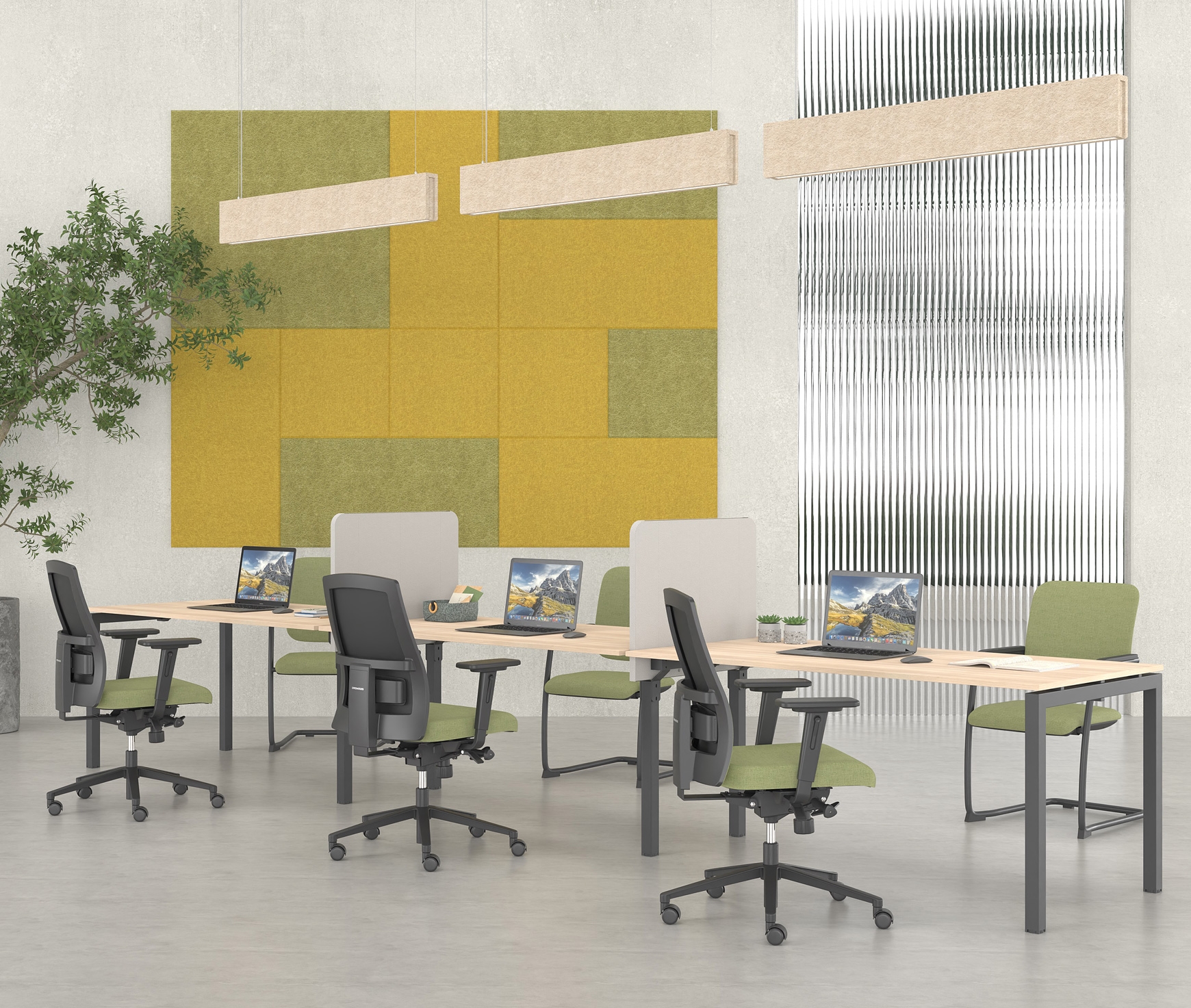 Les panneaux acoustiques suspendus au plafond sont disponibles en formes rectangulaire et carrée. Également fabriqués en feutre 100 % PET d’une épaisseur de 18 mm, ils offrent une forte absorption sonore et un équilibre esthétique dans l’espace. La suspension au plafond se réalise via un système de suspension réglable en hauteur, permettant l’adaptation aux besoins de chaque environnement.
