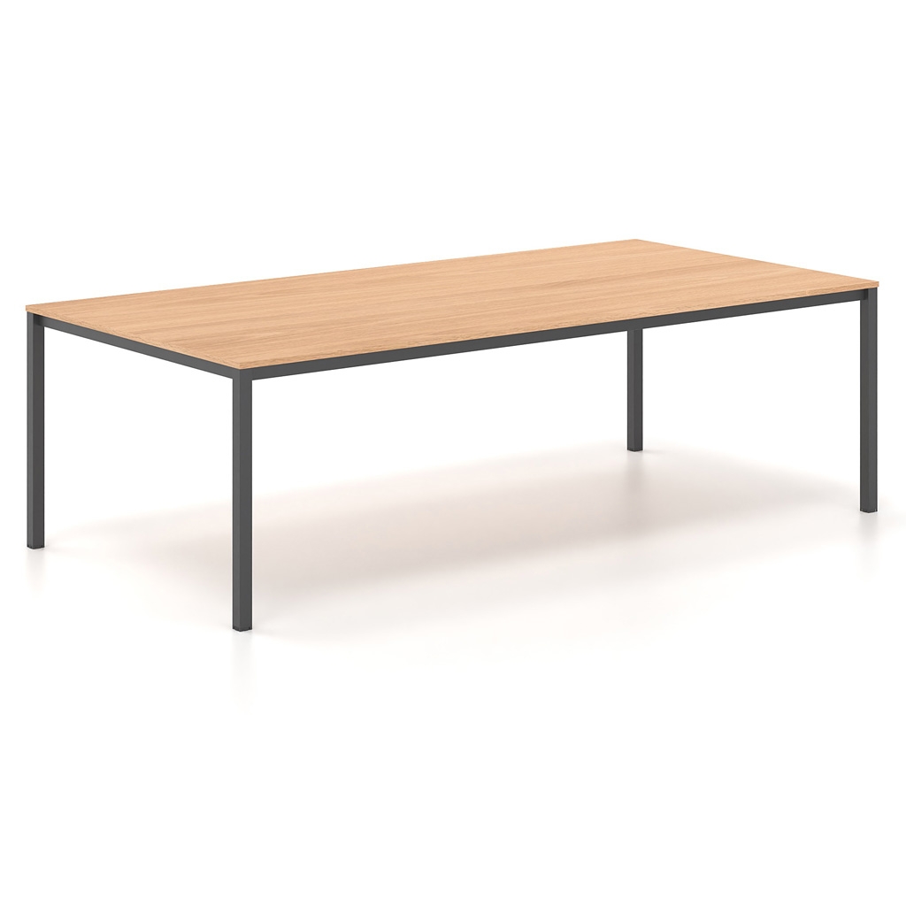 Le cadre carré en métal et les lignes épurées sont les principales caractéristiques de la série Tetra. Elle convient aux espaces qui nécessitent une esthétique moderne et simple. En même temps, elle offre une ergonomie maximale, grâce à laquelle l'utilisateur profite d'une expérience agréable. La surface est composée de mélamine dans différentes nuances, parmi lesquelles vous pouvez choisir celle qui convient à l'espace ou à votre style. Le cadre est en acier de section rectangulaire. La fonctionnalité globale de la table de conférence est complétée par un obturateur en option, nickelé ou peint, et une goulotte passe-câbles sous la surface, qui facilitent le passage et l'organisation des câbles de manière discrète.