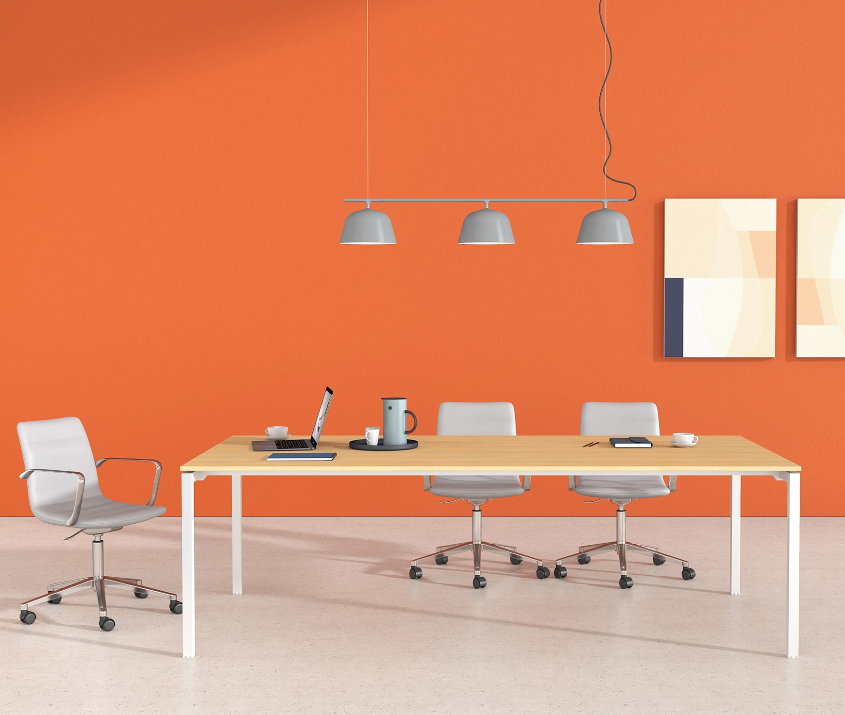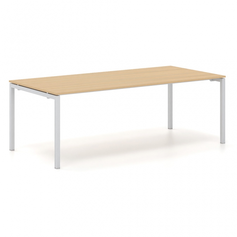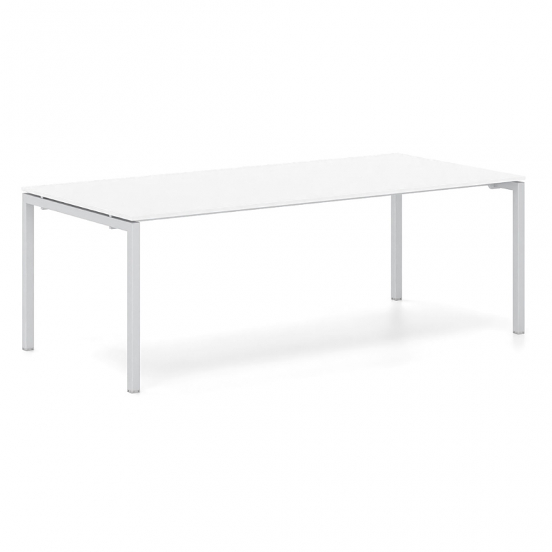 Le bureau de conférence professionnel NEO se caractérise par sa simplicité et son design moderne. Il est idéal pour les espaces qui nécessitent une approche esthétique moderne. Il a des dimensions adaptées en fonction du nombre de personnes et avec une adaptation flexible du cadre qui permet des supports uniques (communs) entre des surfaces voisines en retrait du bord de la surface afin de ne pas gêner la position des pieds des personnes. Le bureau est fait de mélamine dans différentes nuances, parmi lesquelles vous pouvez choisir celle qui convient à votre espace ou à votre style. Les surfaces des bureaux sont soutenues par un cadre en profilé d'acier de section rectangulaire. La fonctionnalité globale de la table de conférence est complétée par un obturateur en option, nickelé ou peint, et la goulotte passe-câbles sous la surface, qui facilitent le passage et l'organisation des câbles de manière discrète.